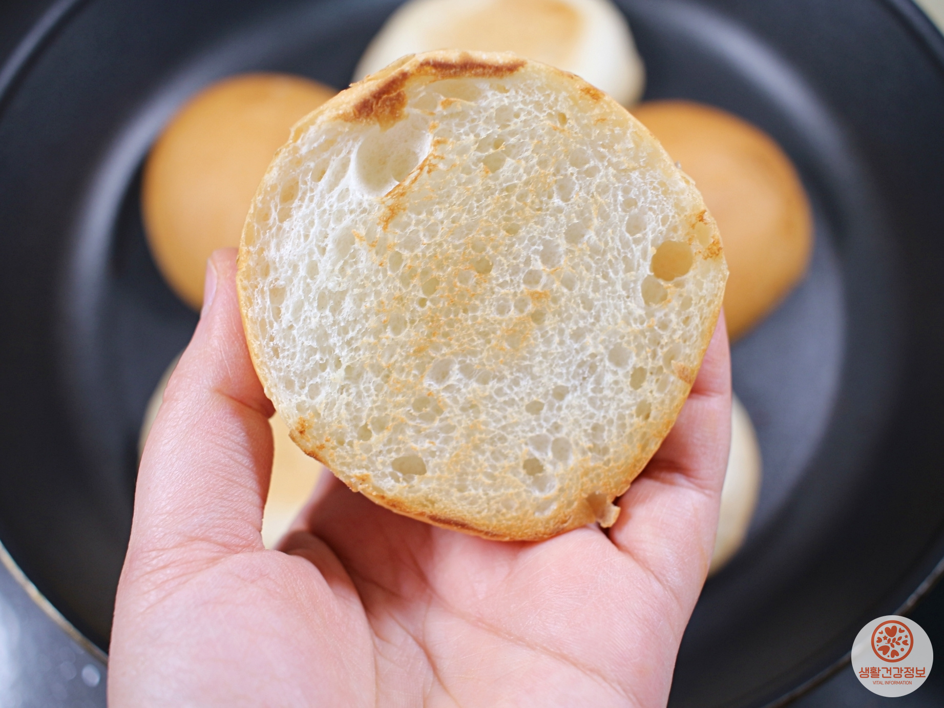 모닝빵은 반으로 잘라서 구워주세요.