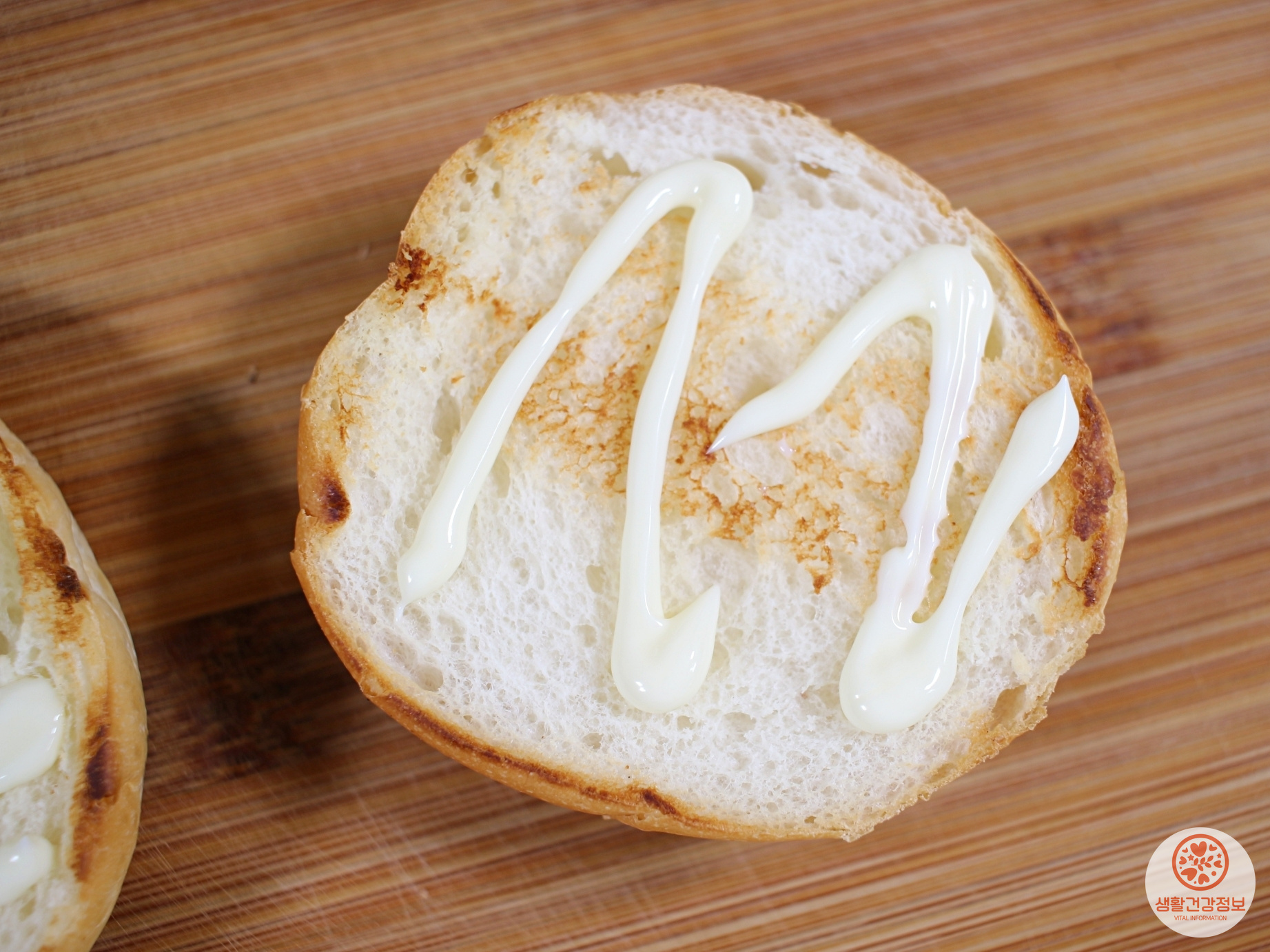 모닝빵에 마요네즈 살짝 바르고요.