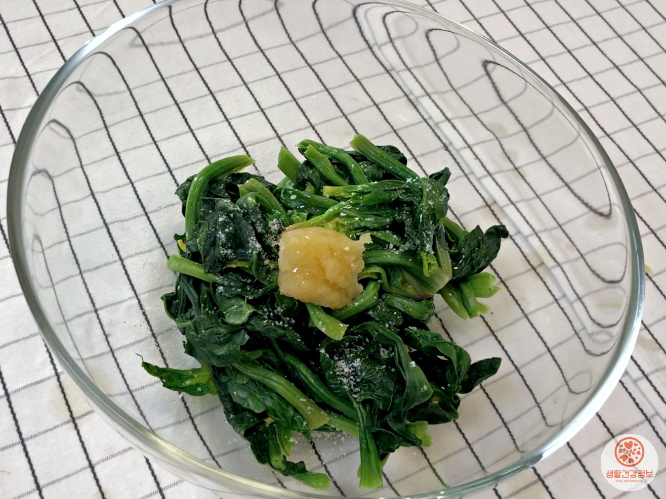 소금 한꼬집에 다진마늘 반큰술 넣고 무쳐요.