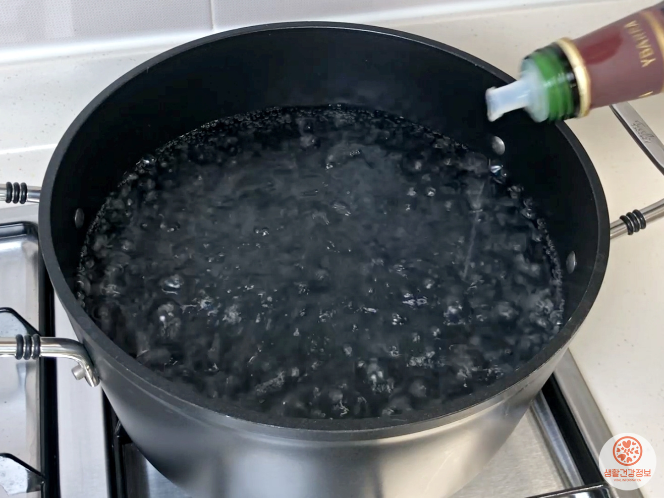 냄비에 물을 넉넉하게 붓고 식용유도 2큰술 넣어주세요.