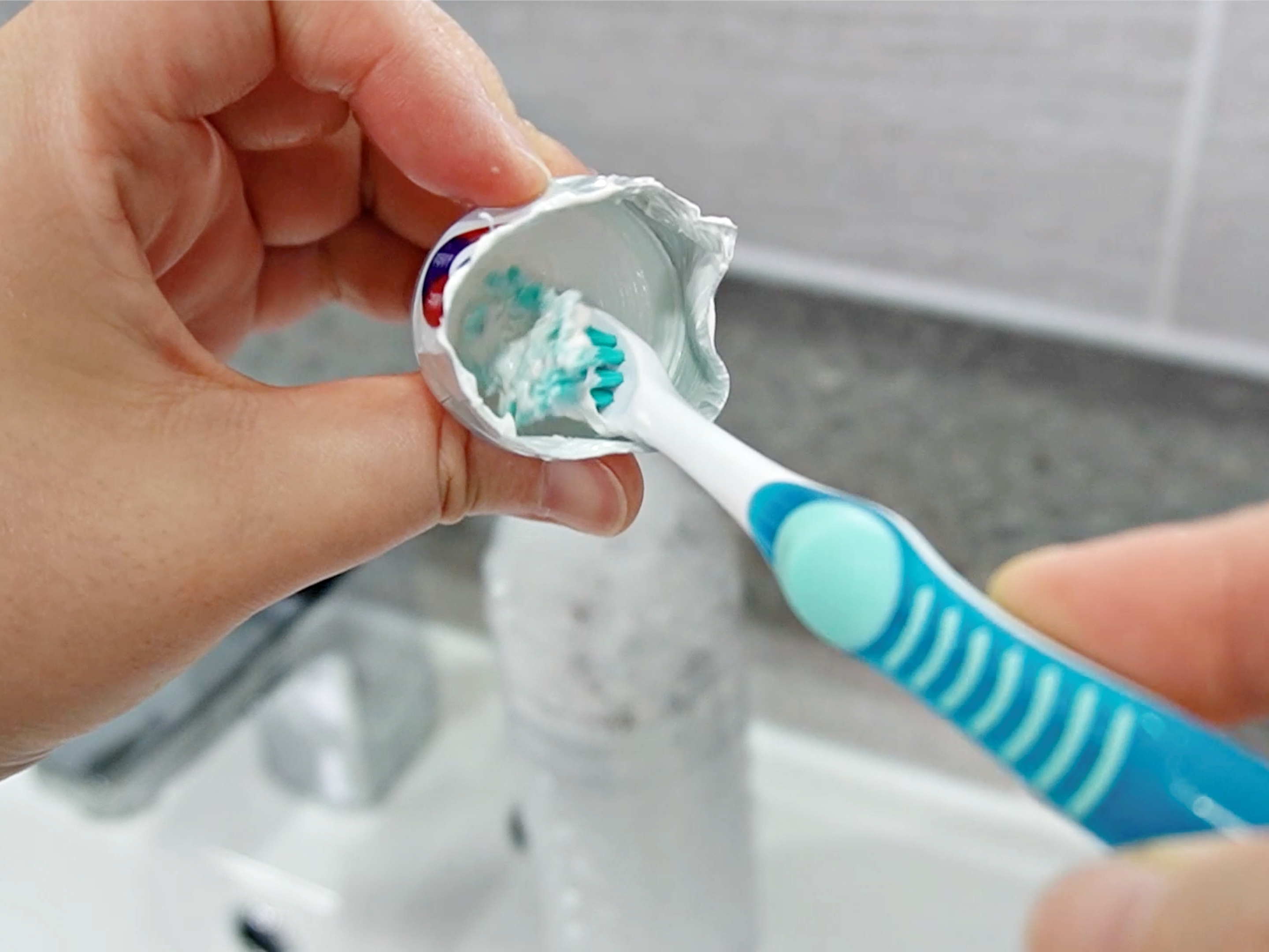 치약 뚜껑에 남은 잔량도 칫솔로 쓱쓱 긁어 쓰면