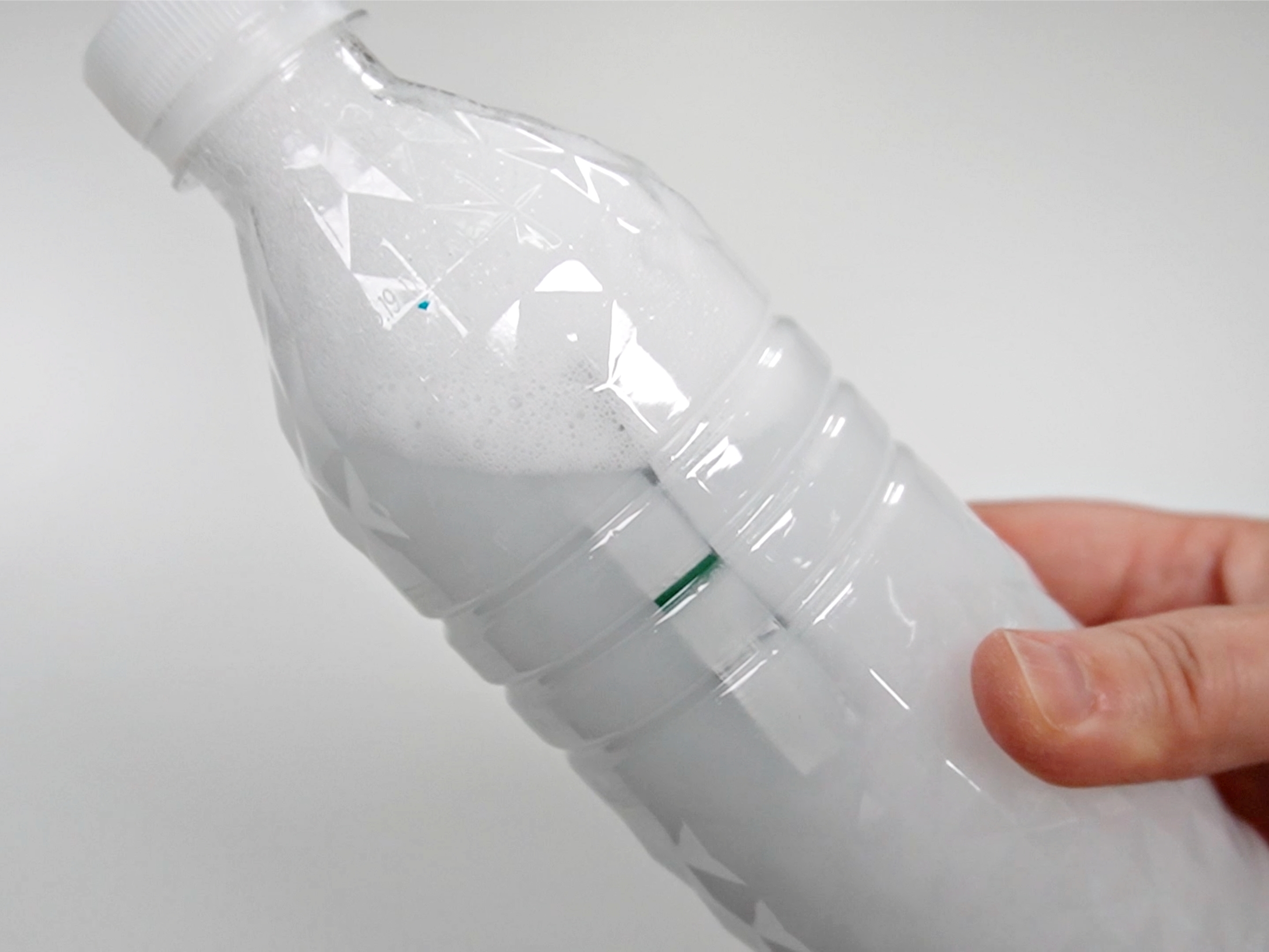 미지근한 물을 페트병에 부어요.