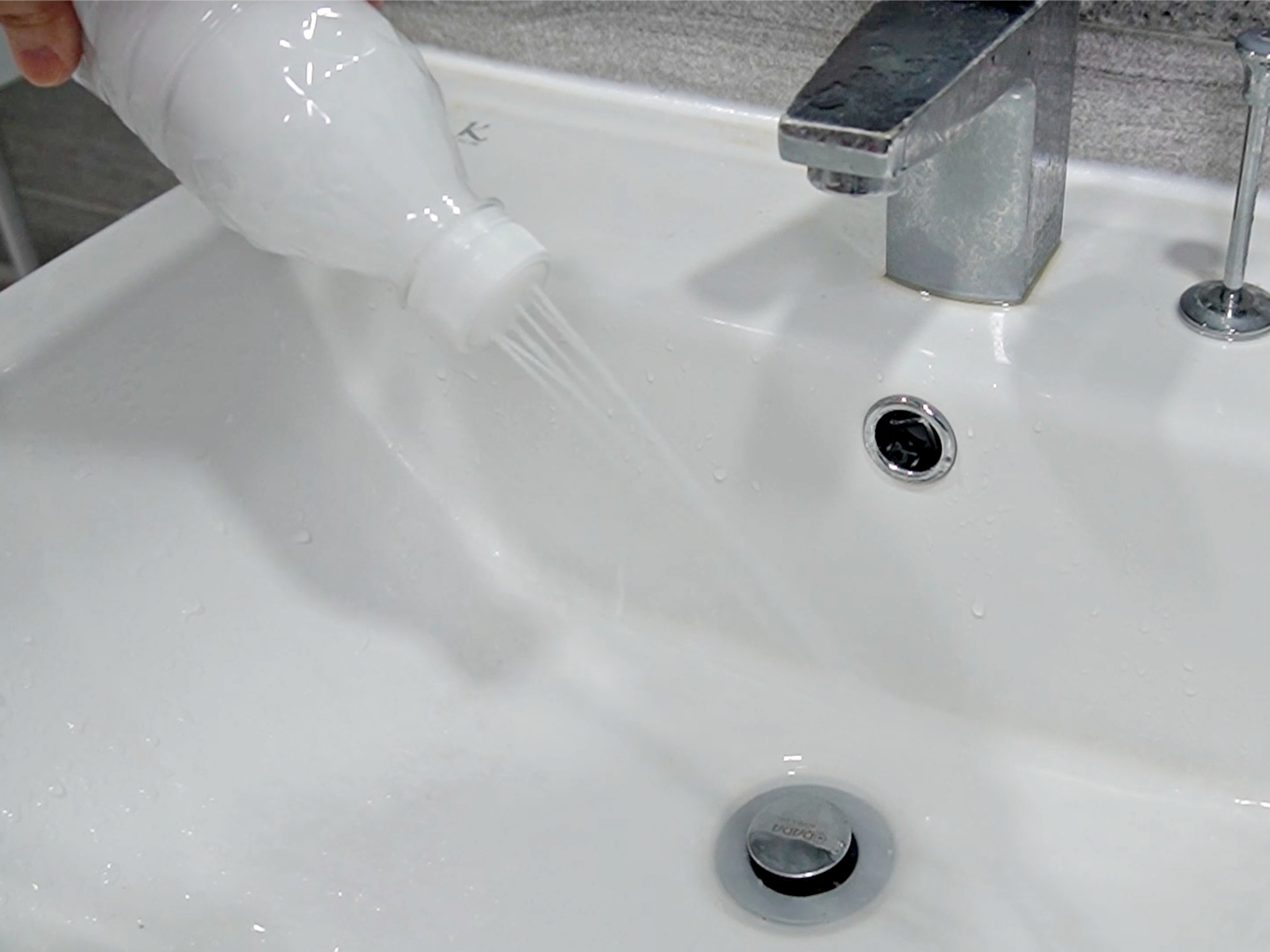 치약이 물에 잘 섞이도록 흔들어주세요.