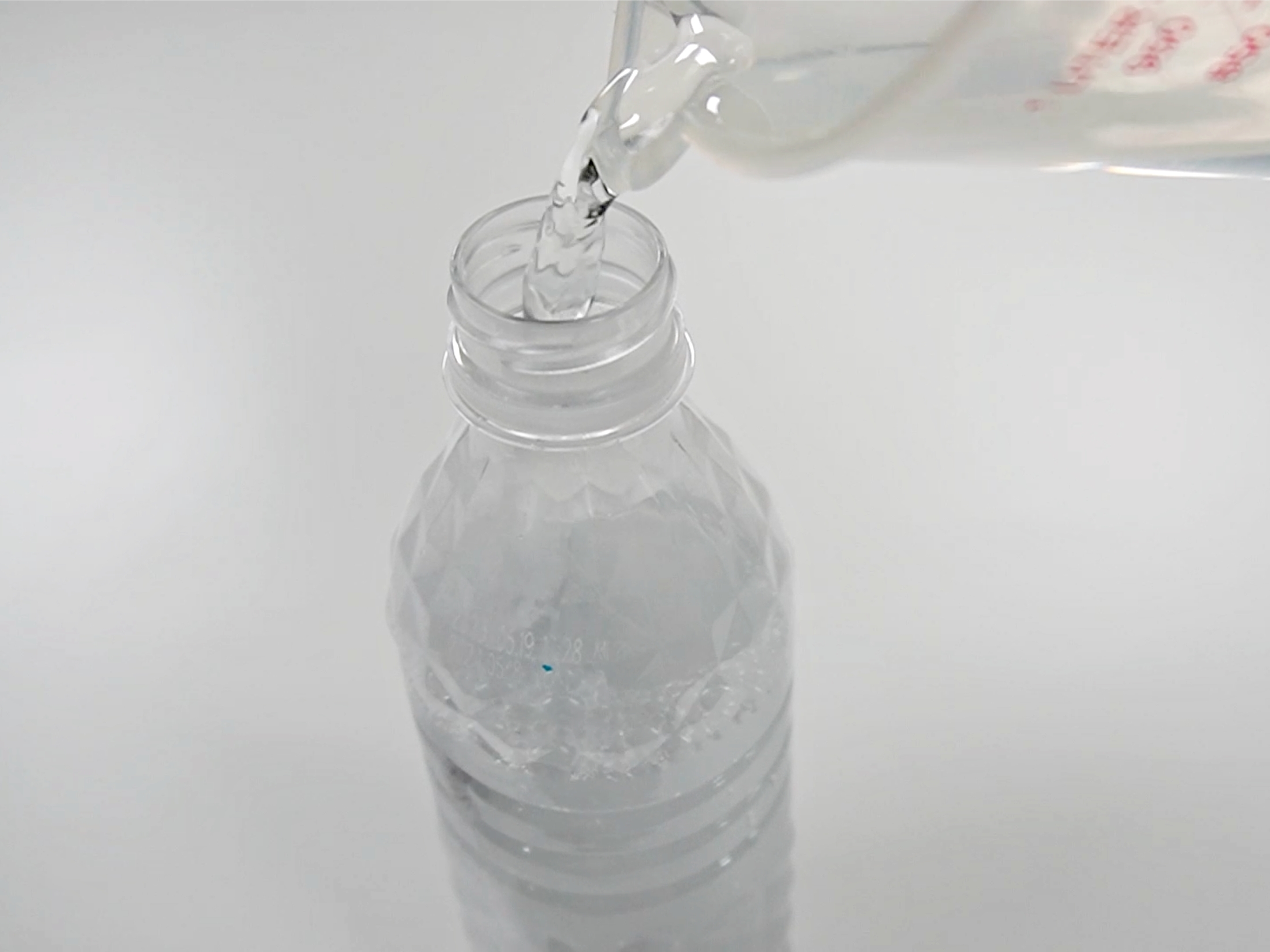 미지근한 물을 페트병에 부어요.