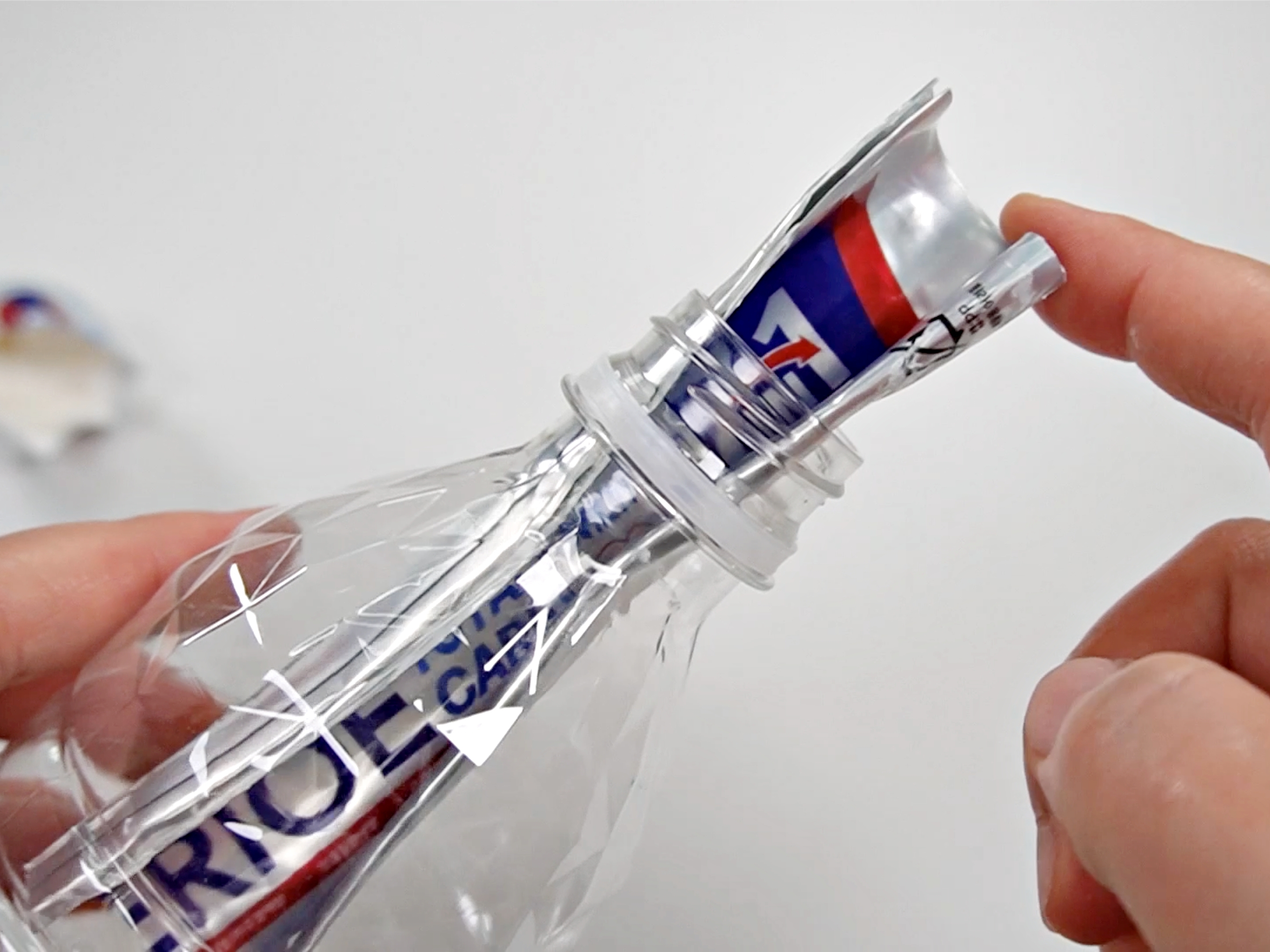 치약을 페트병에 쏙쏙 밀어 넣어주세요.