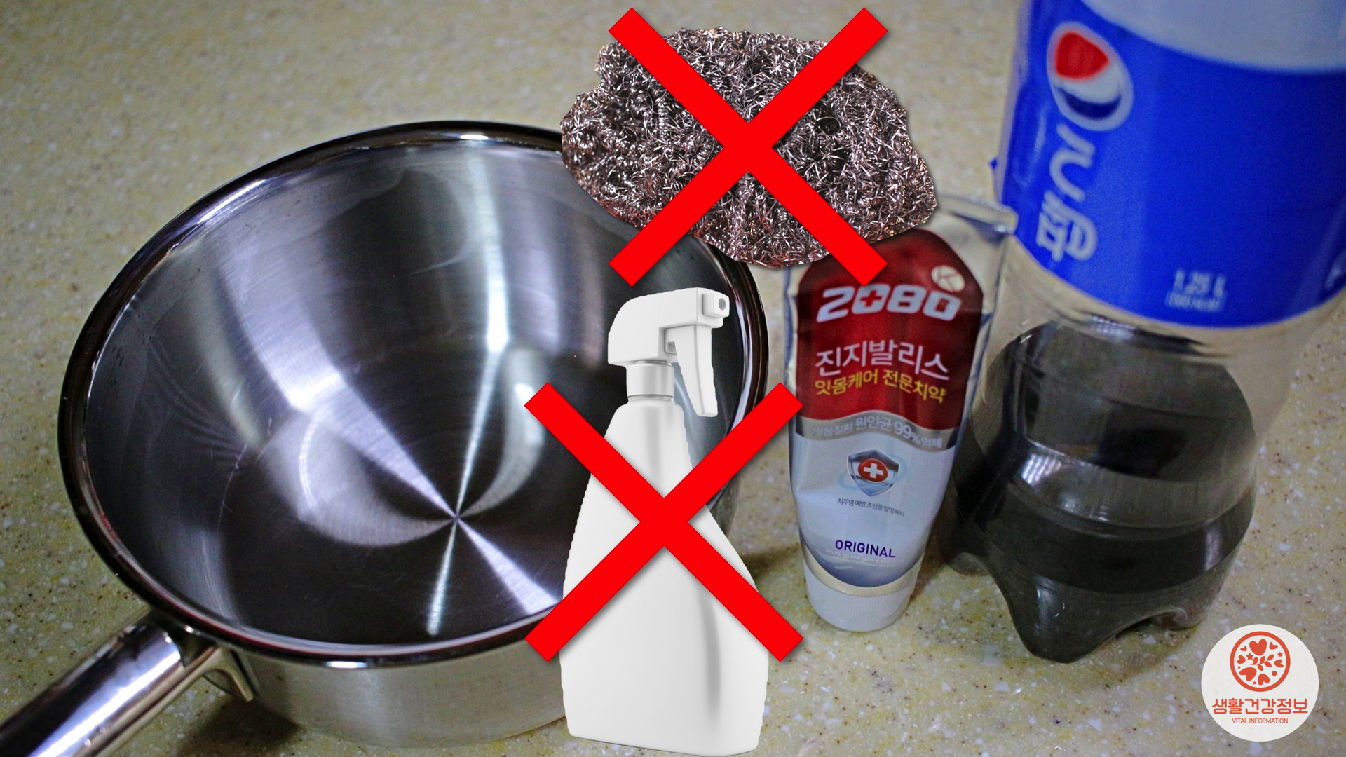 철수세미로 닦자니 코팅이 벗겨질 것 같고,