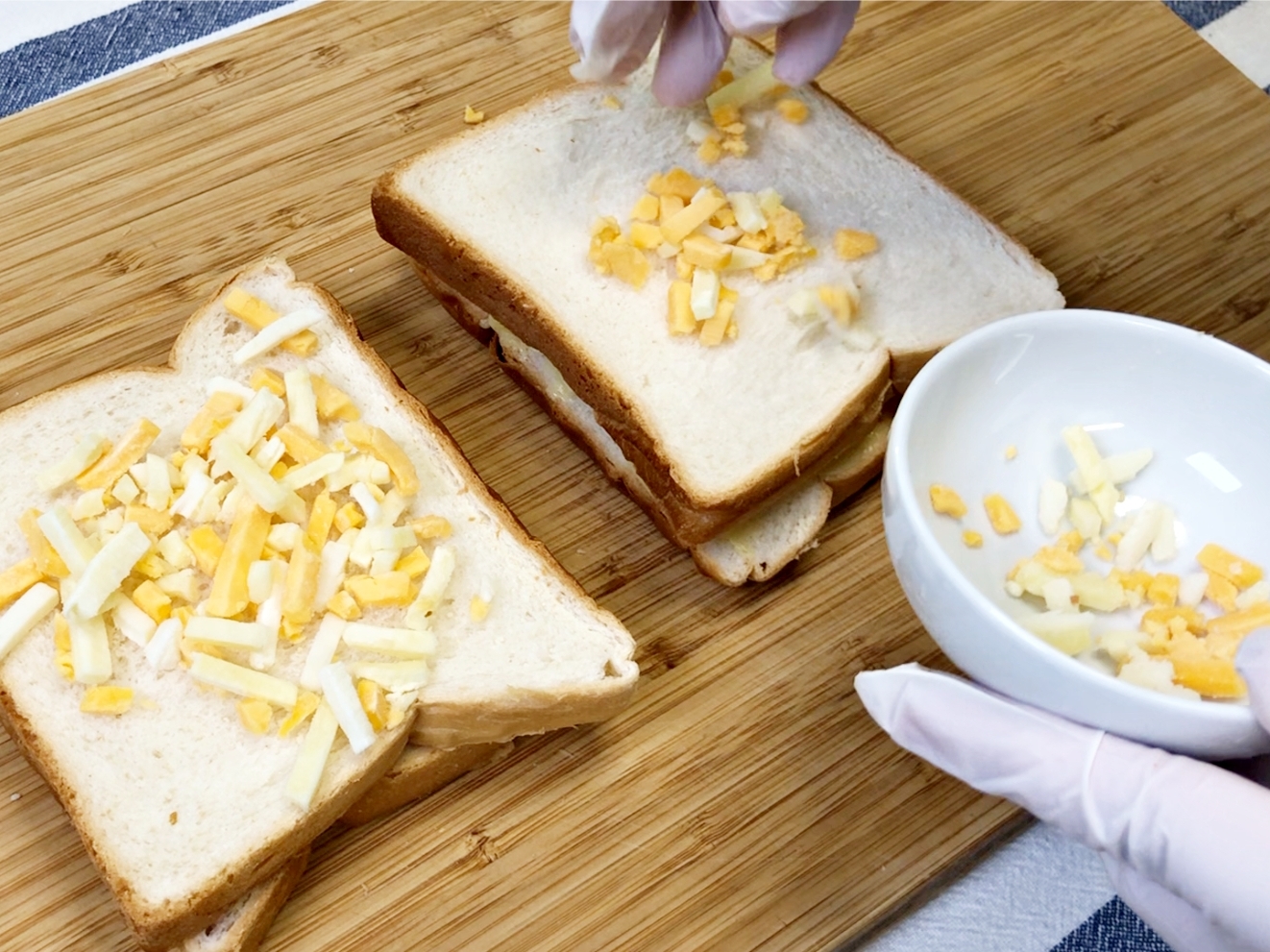 그 위에 모짜렐라치즈 올린 다음 식빵을 덮고요.