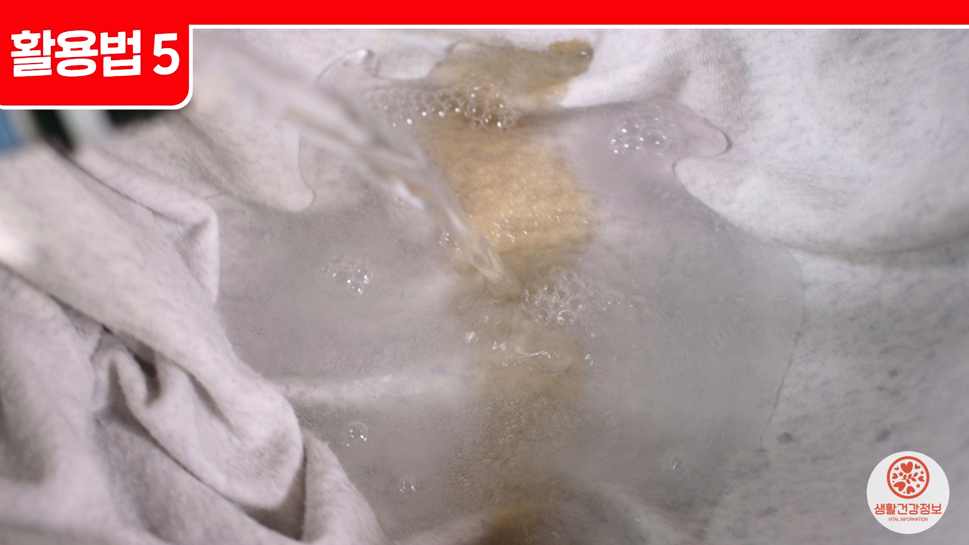 얼룩 진 부분을 탄산수에 충분히 담가서