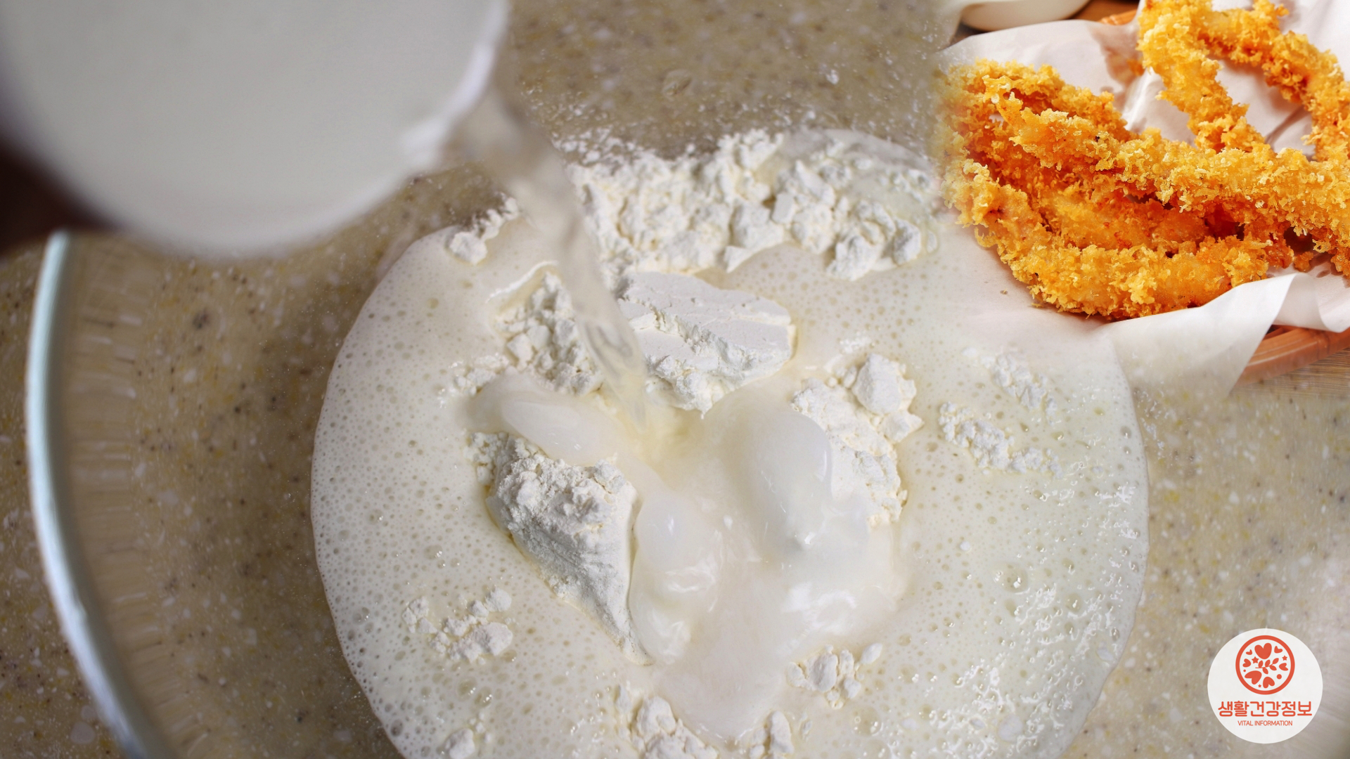 탄산수를 넣으면 더 바삭하니 맛있고요.
