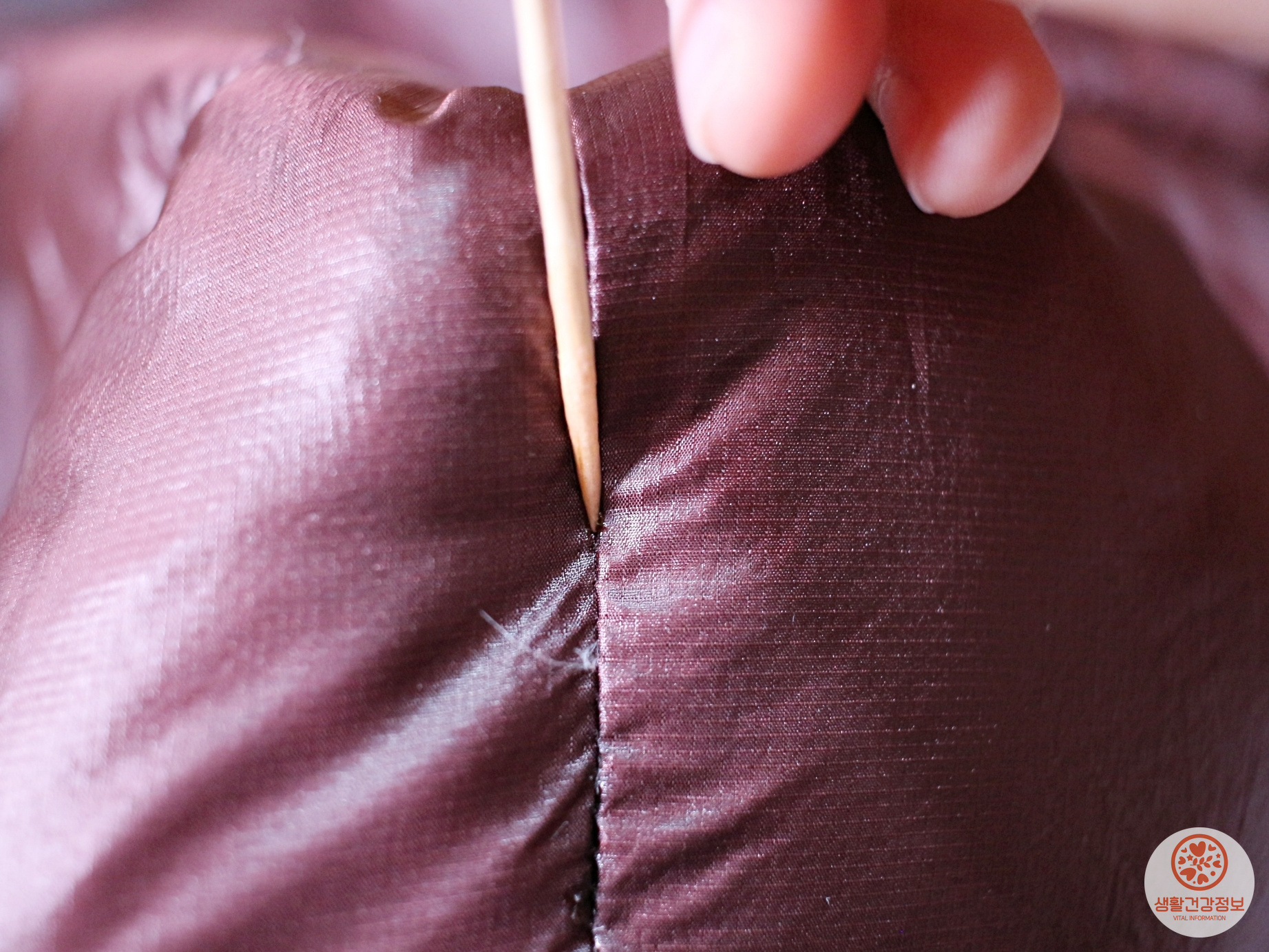 패딩의 털빠짐은 대부분 박음질 선에서 나와요.