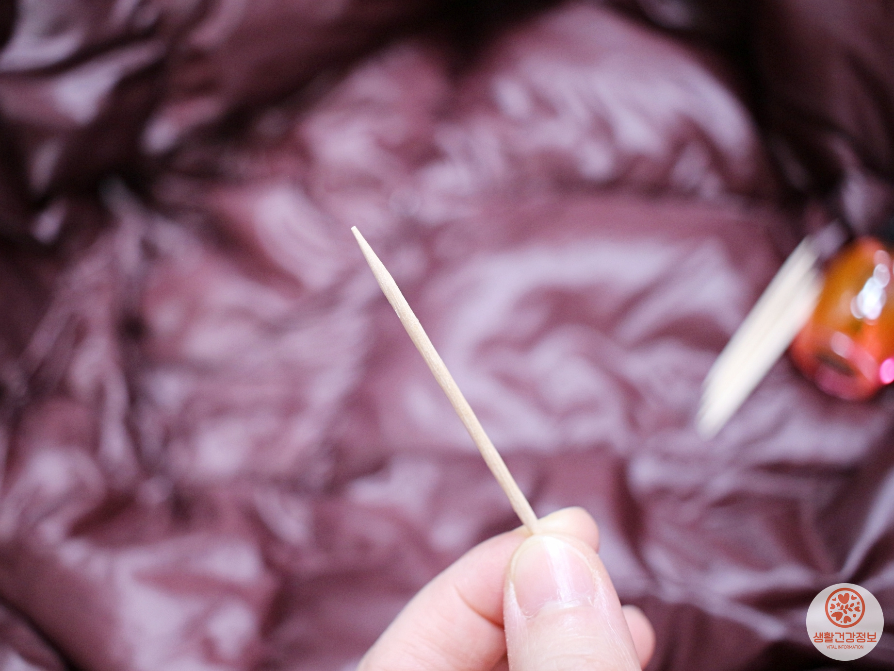 이쑤시개 끝부분으로 투명매니큐어를 콕 찍고