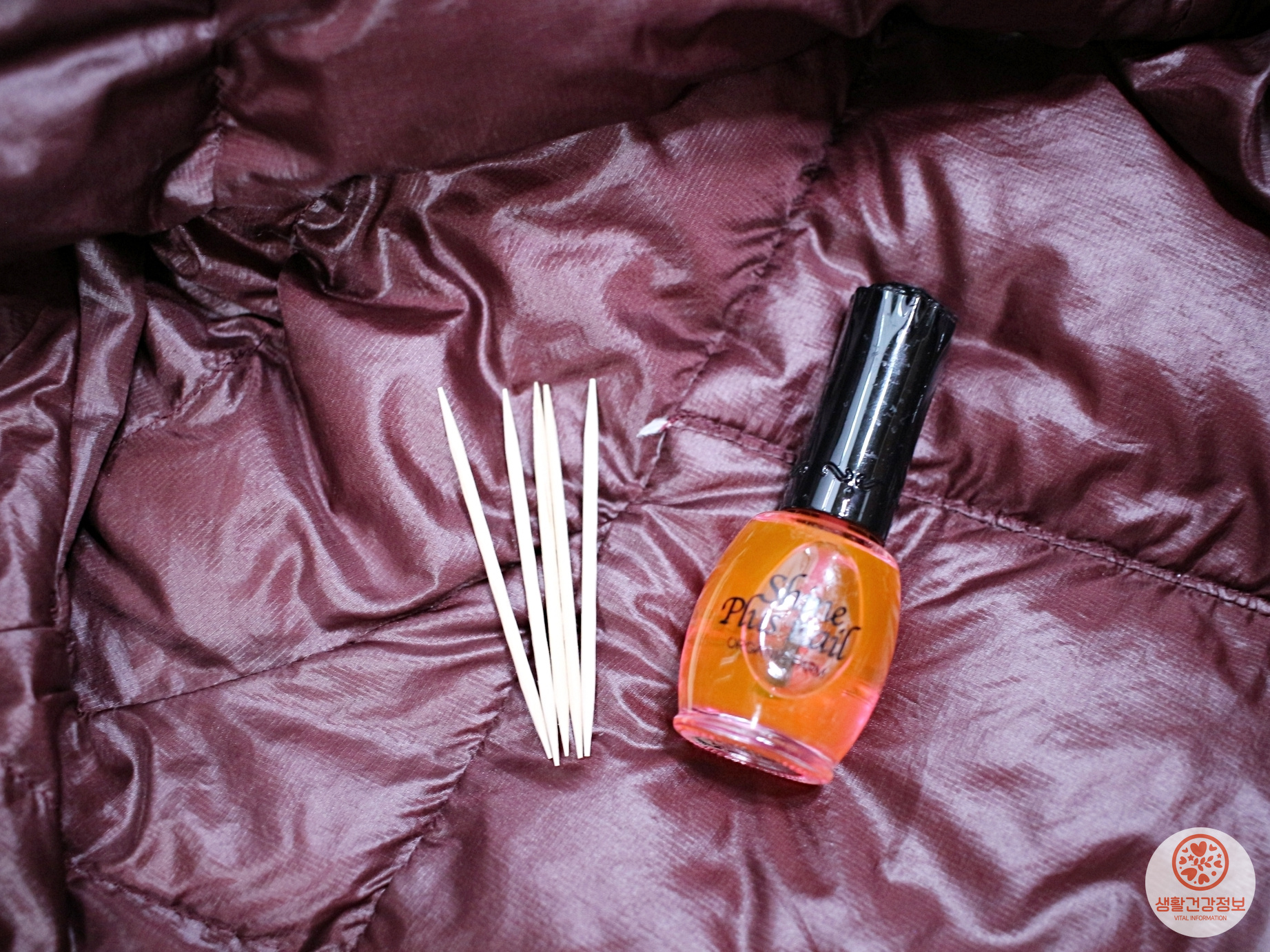 투명매니큐어로 박음질선의 빈 공간을 메꾸면