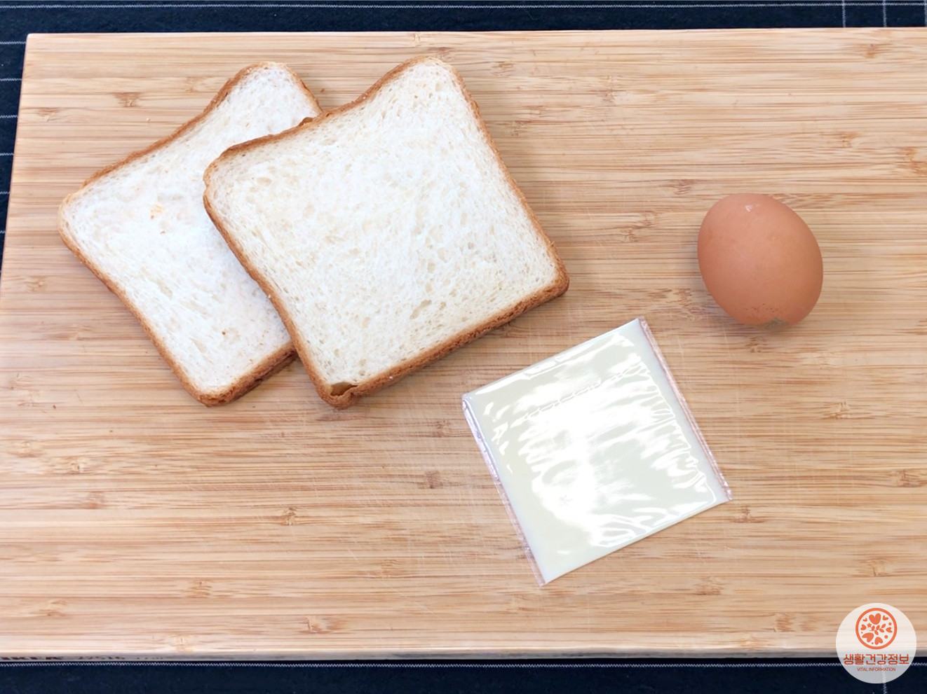 재료는 식빵, 달걀, 슬라이스치즈 끝.