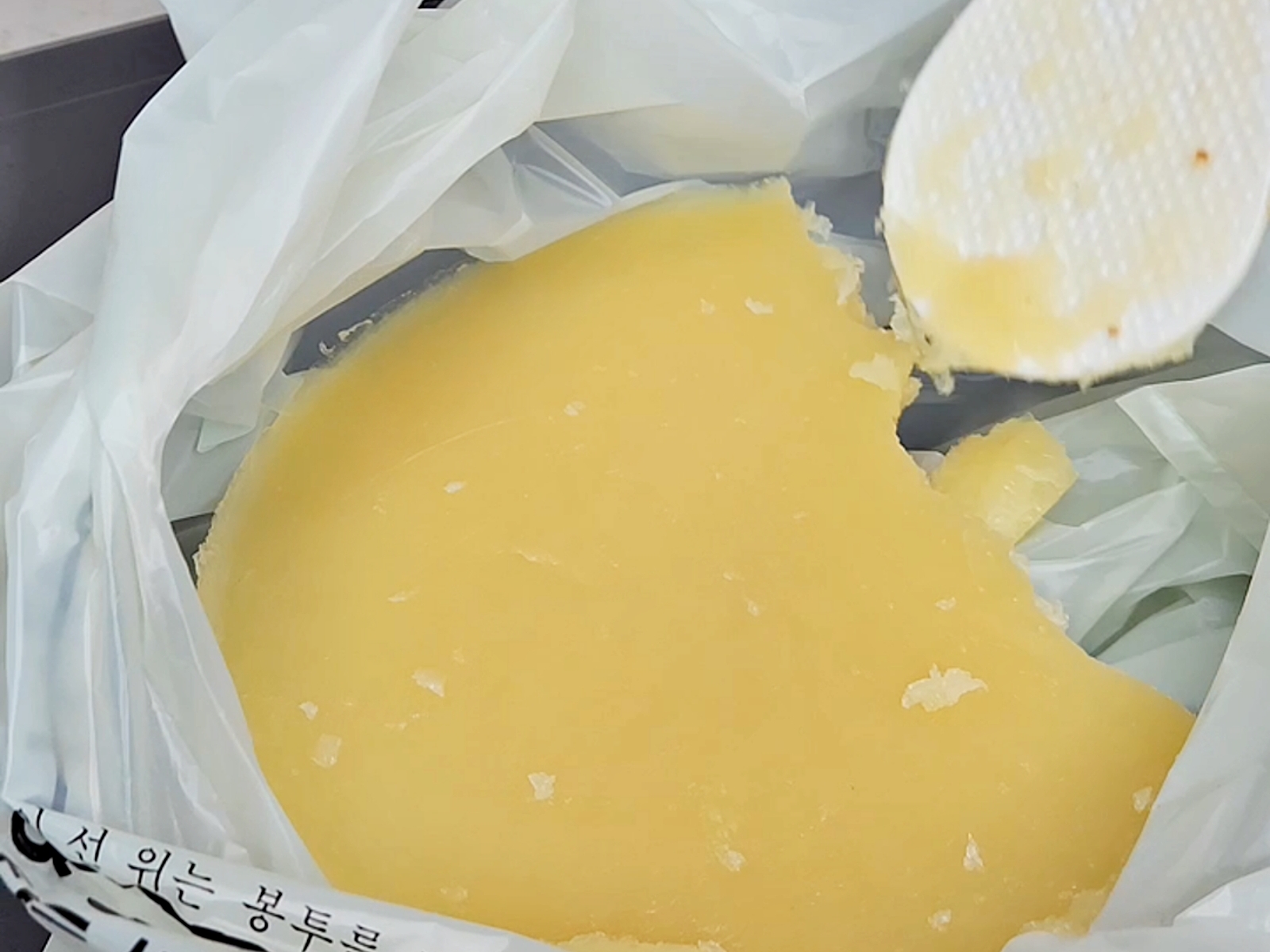 숟가락으로 떠낼 수 있는 정도로 굳어서