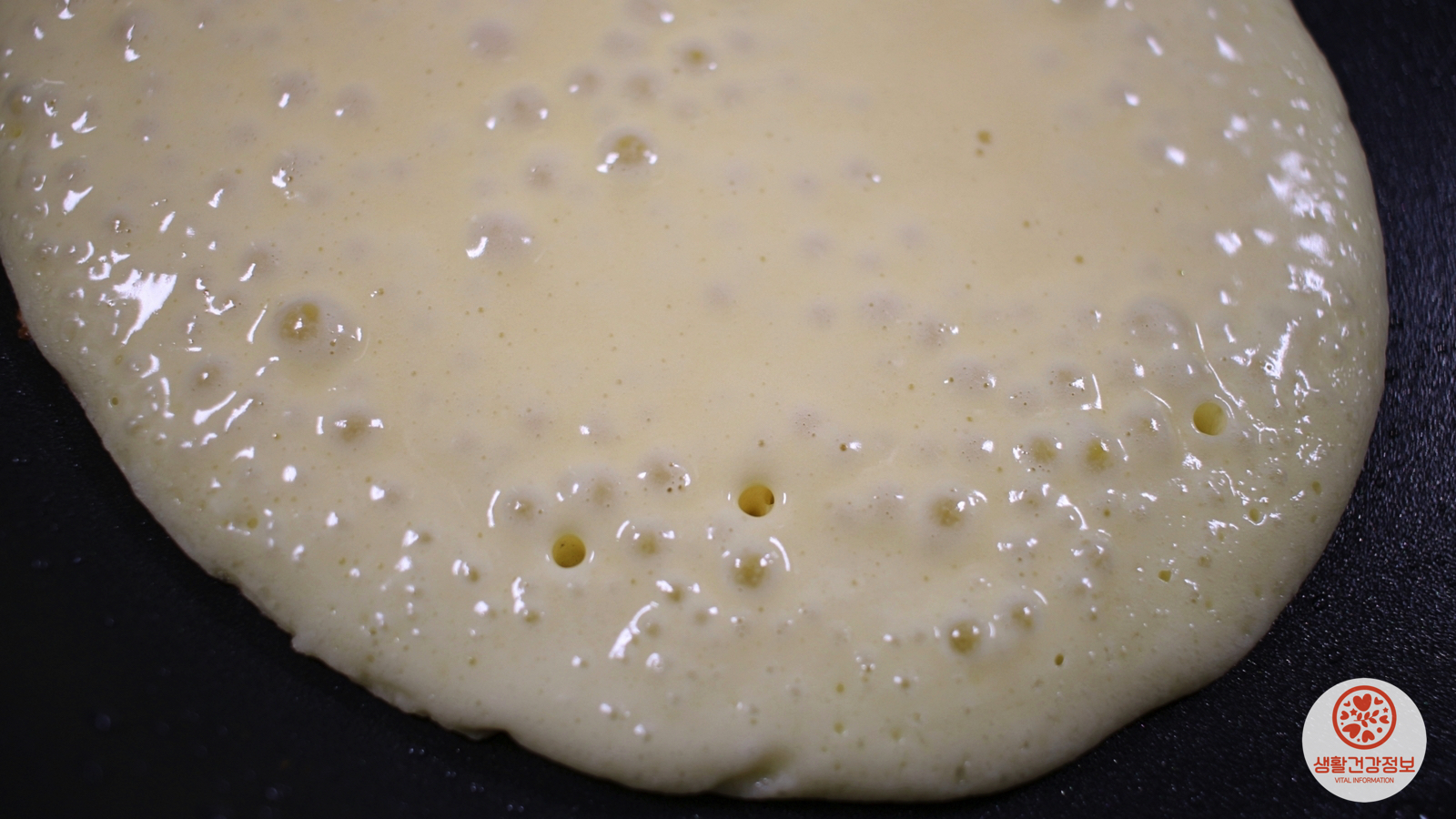 반죽을 뒤집을 타이밍이에요.