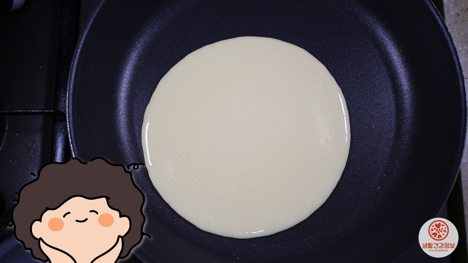 반죽을 뒤집을 타이밍이에요.