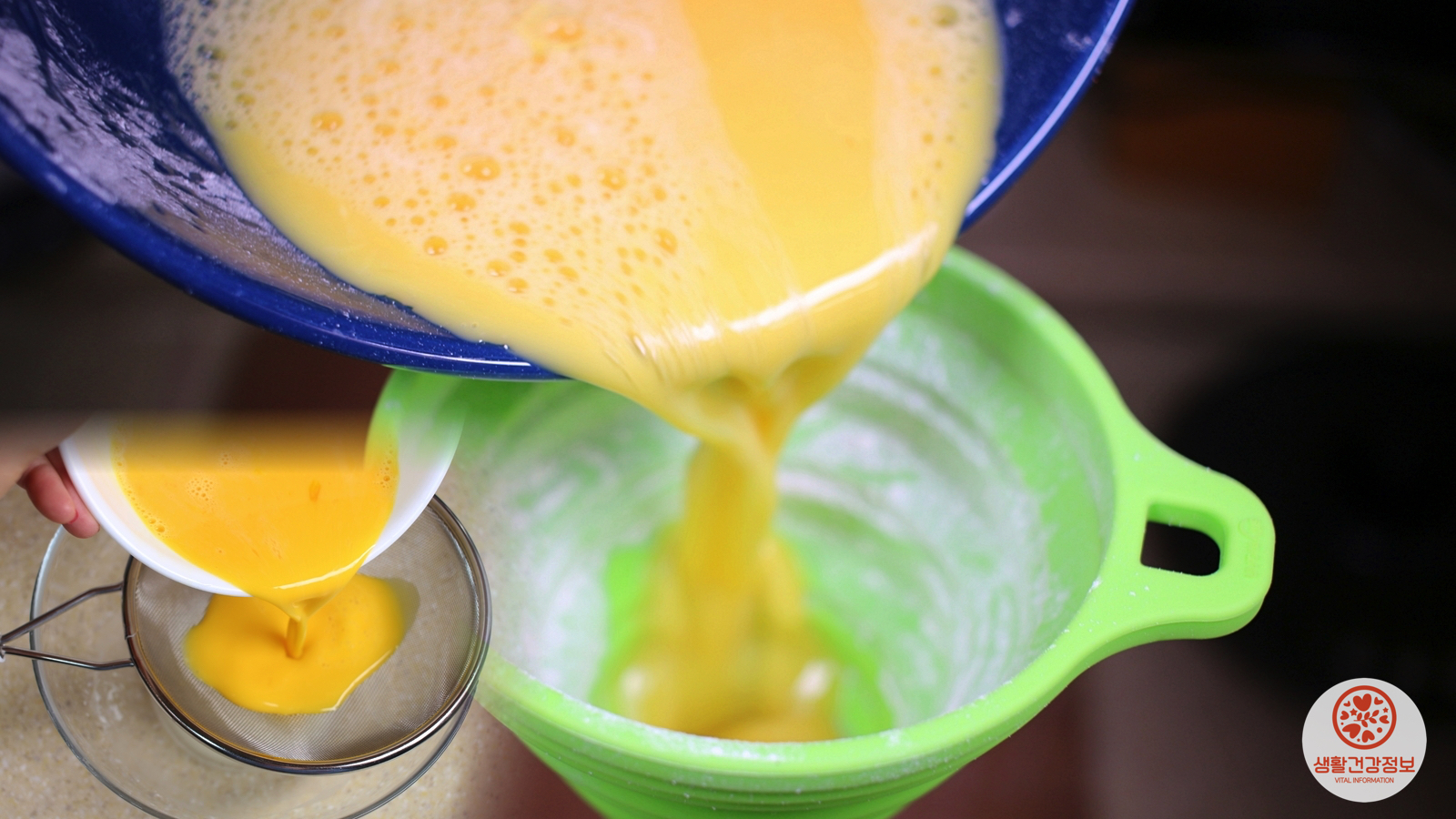 계란물을 체에 걸러서 알끈을 제거하면