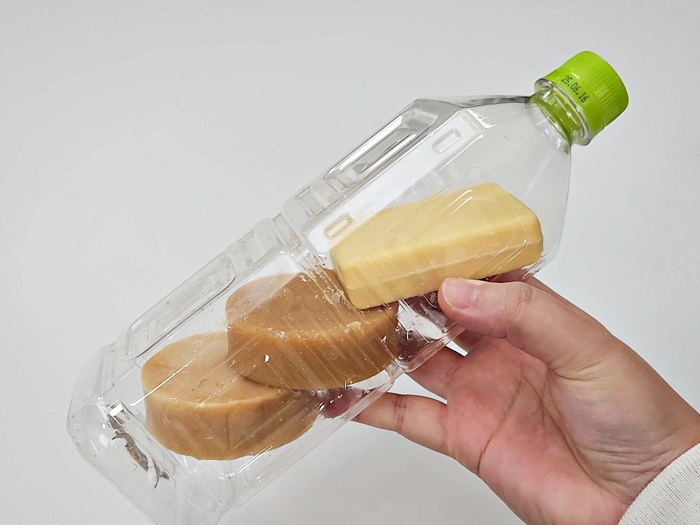 패트병을 반으로 잘라 따뜻한 물을 넣고