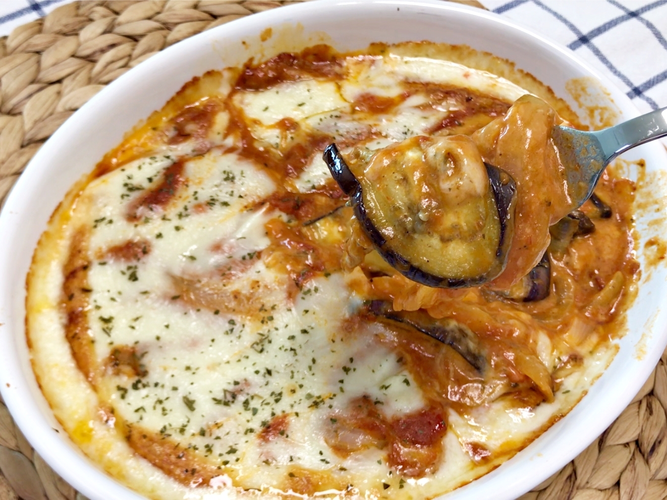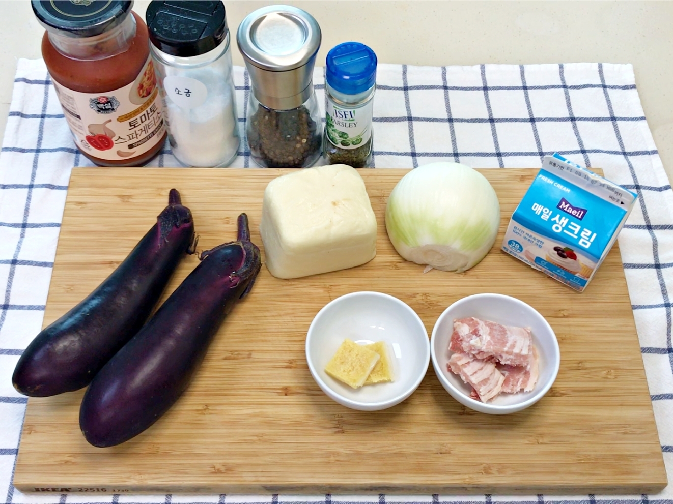 가지, 모짜렐라치즈, 양파, 베이컨, 다진마늘,