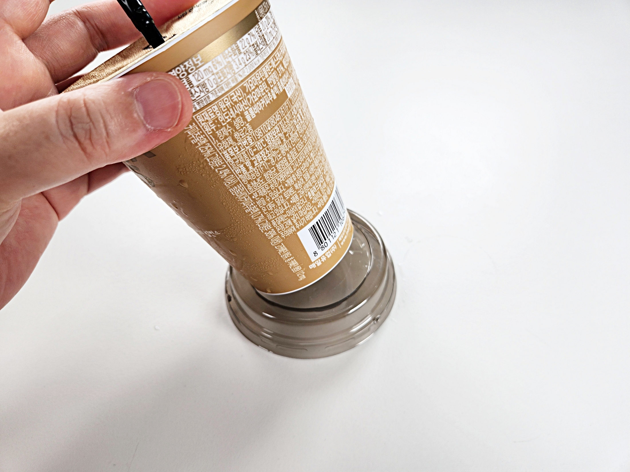 따로 뺀 뚜껑은 버리지 말고 커피컵의 받침대처럼 사용해보세요.