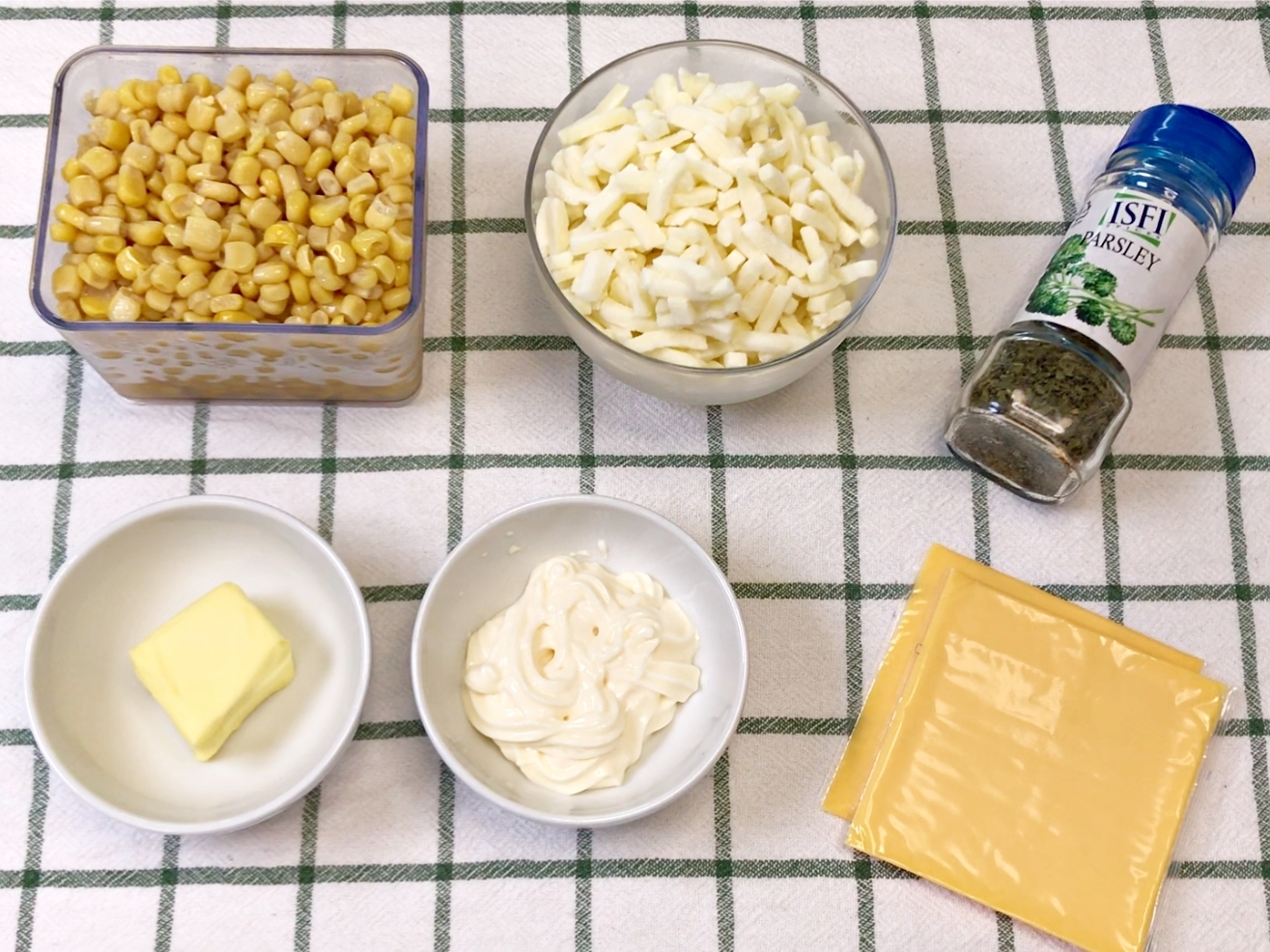 캔옥수수1개, 마요네즈, 버터, 모짜렐라치즈,