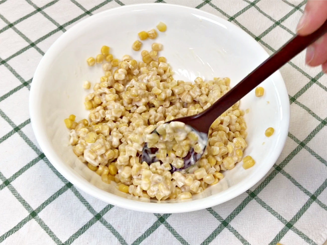 마요네즈에 버무린 옥수수를 넣어주세요.