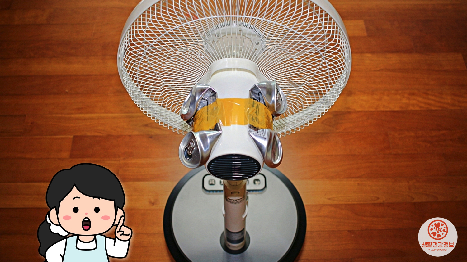 선풍기 모터를 감싸고 있는 커버에 붙이면