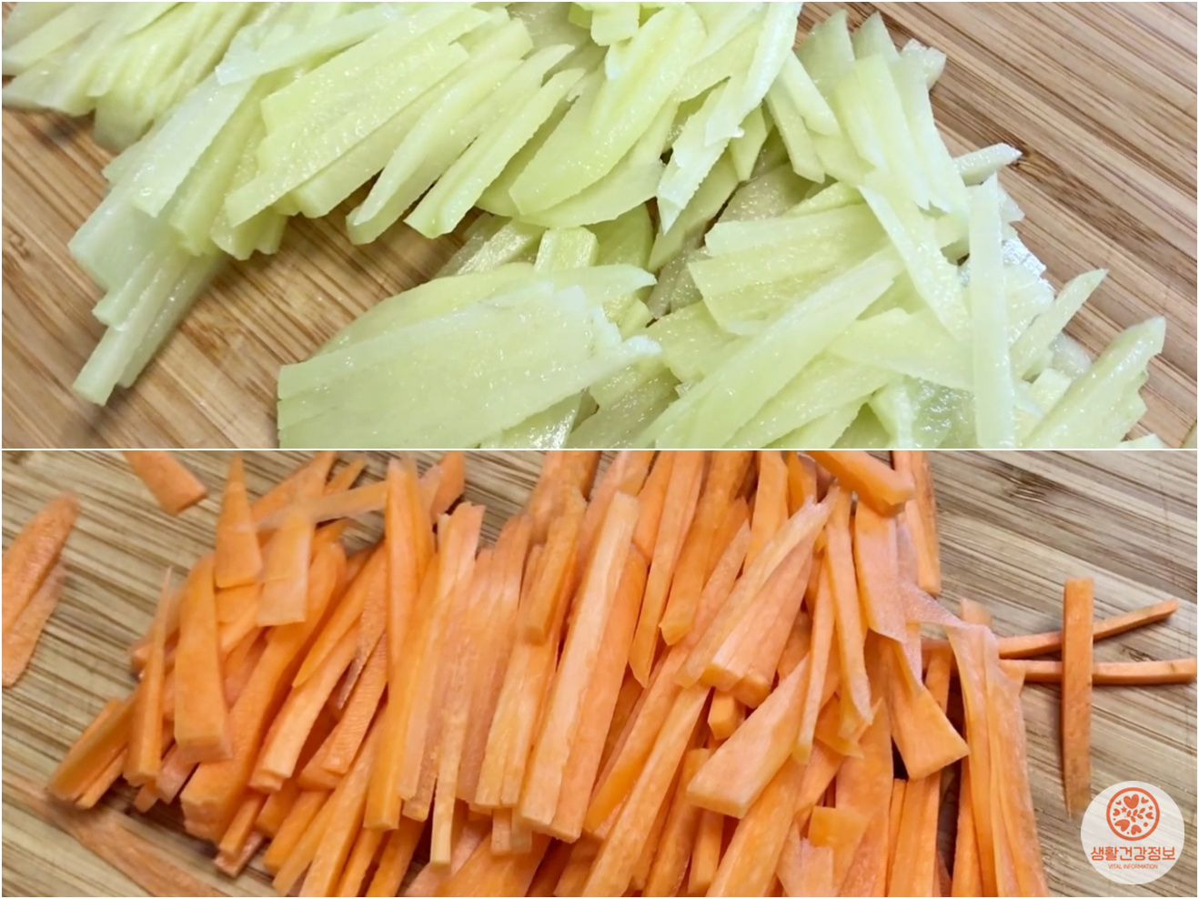 감자 1.5개, 당근1.5개도 얇게 채 썰어주세요.