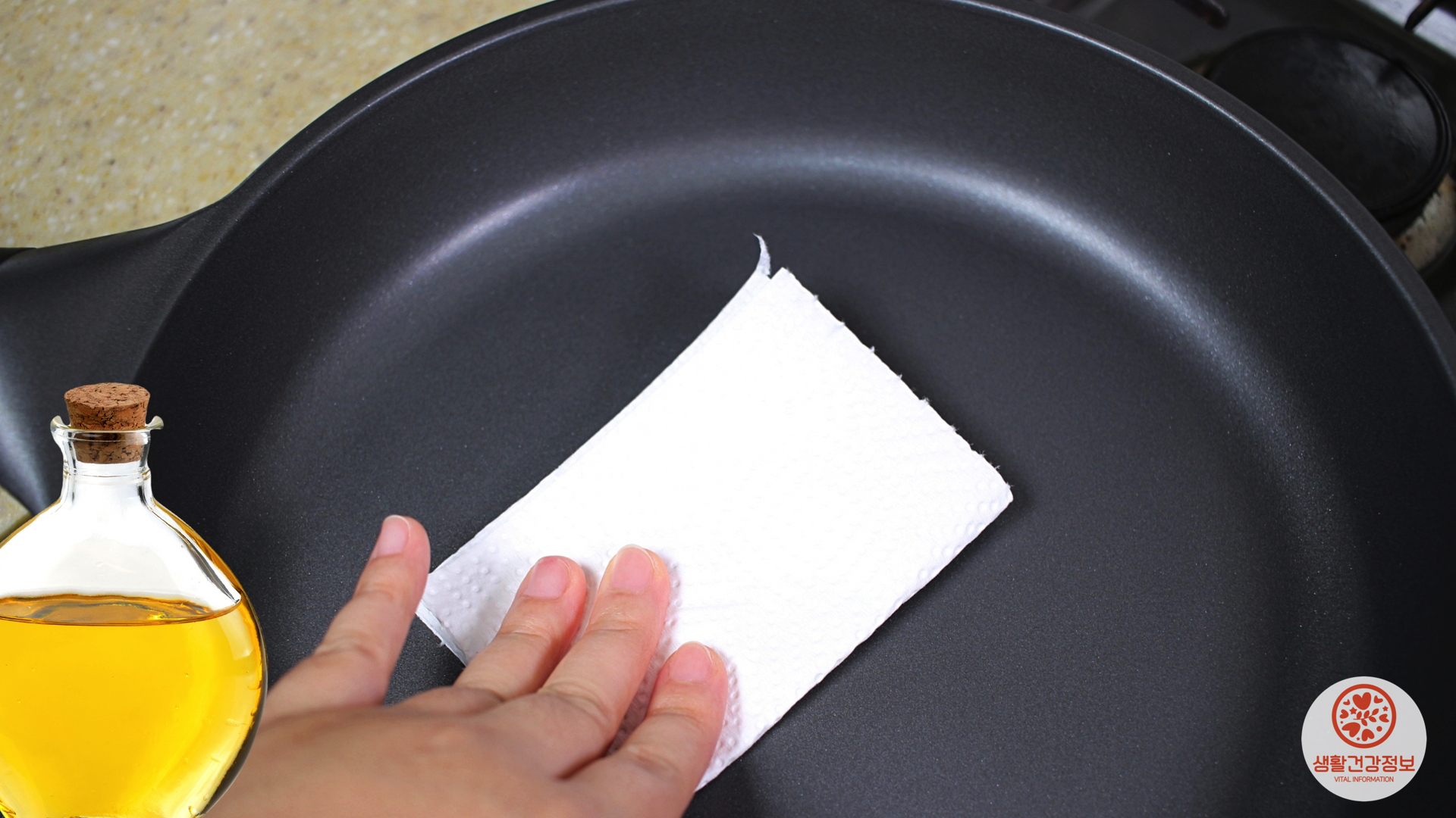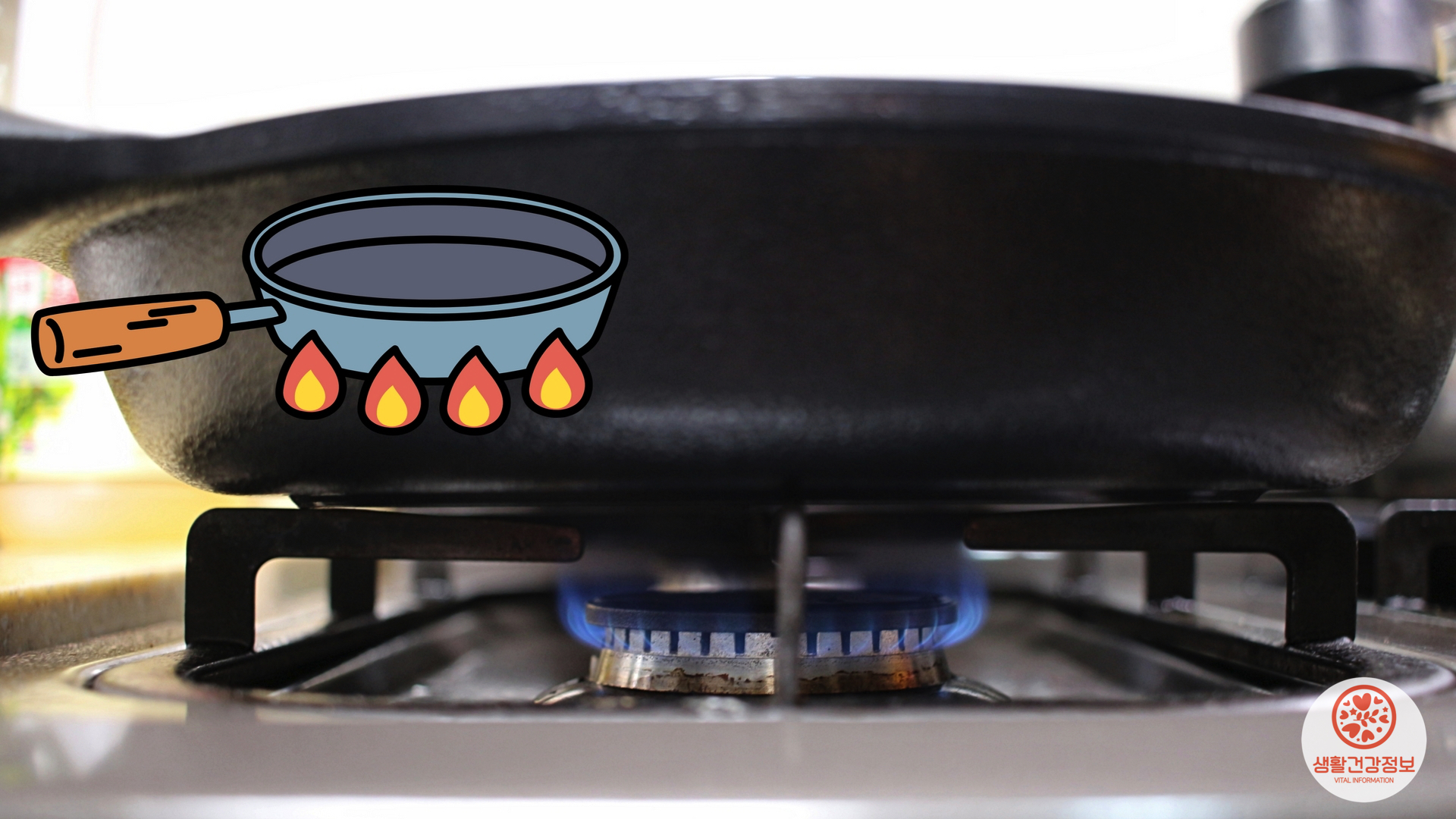 프라이팬을 약불에서 은은하게 달궈주세요.