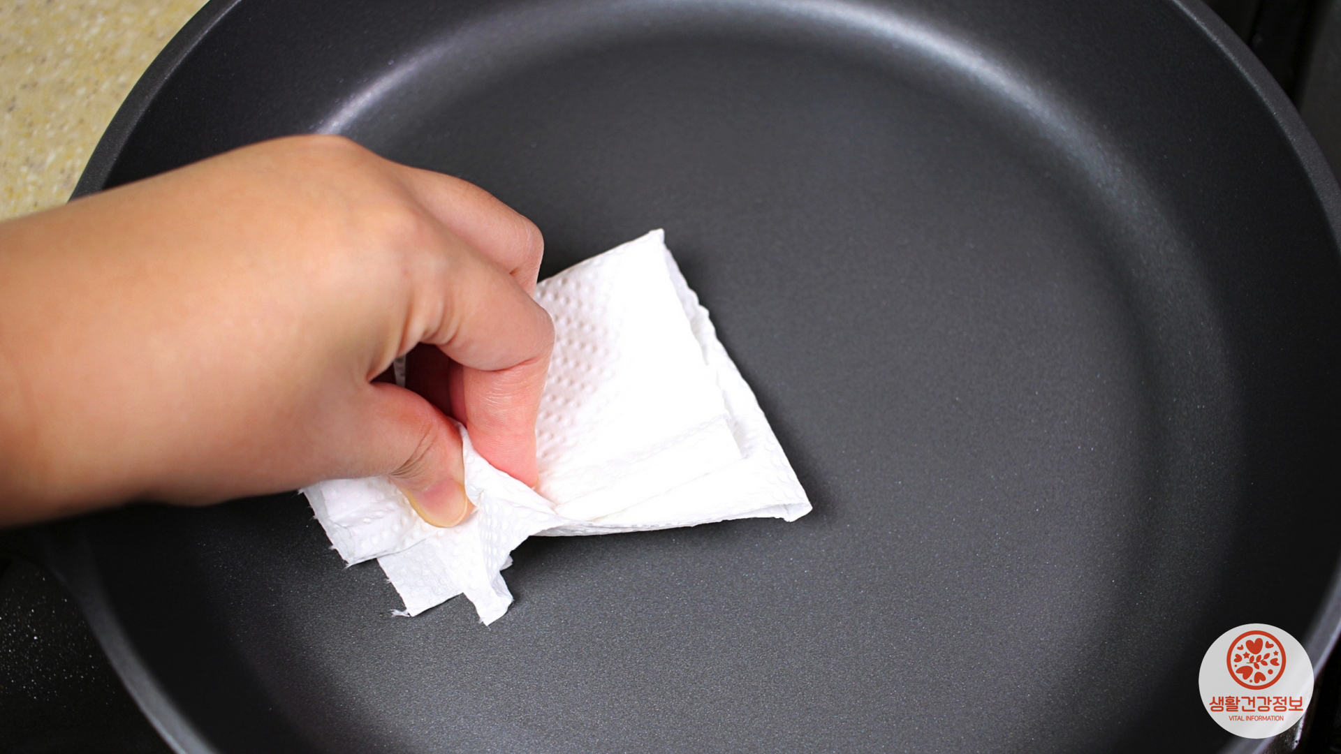 설거지를 한 프라이팬의 물기를 제거한 다음