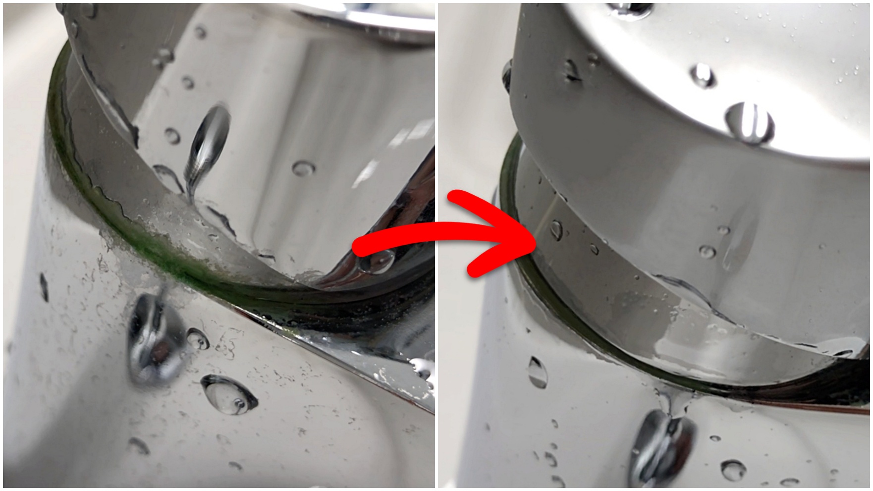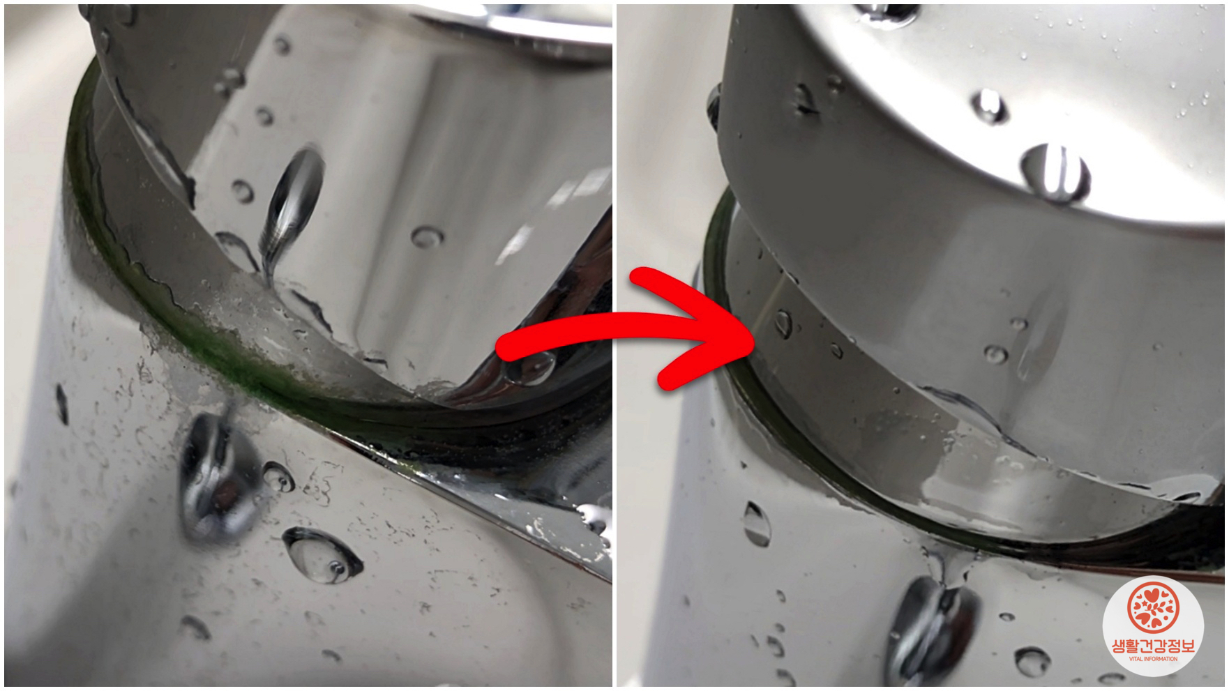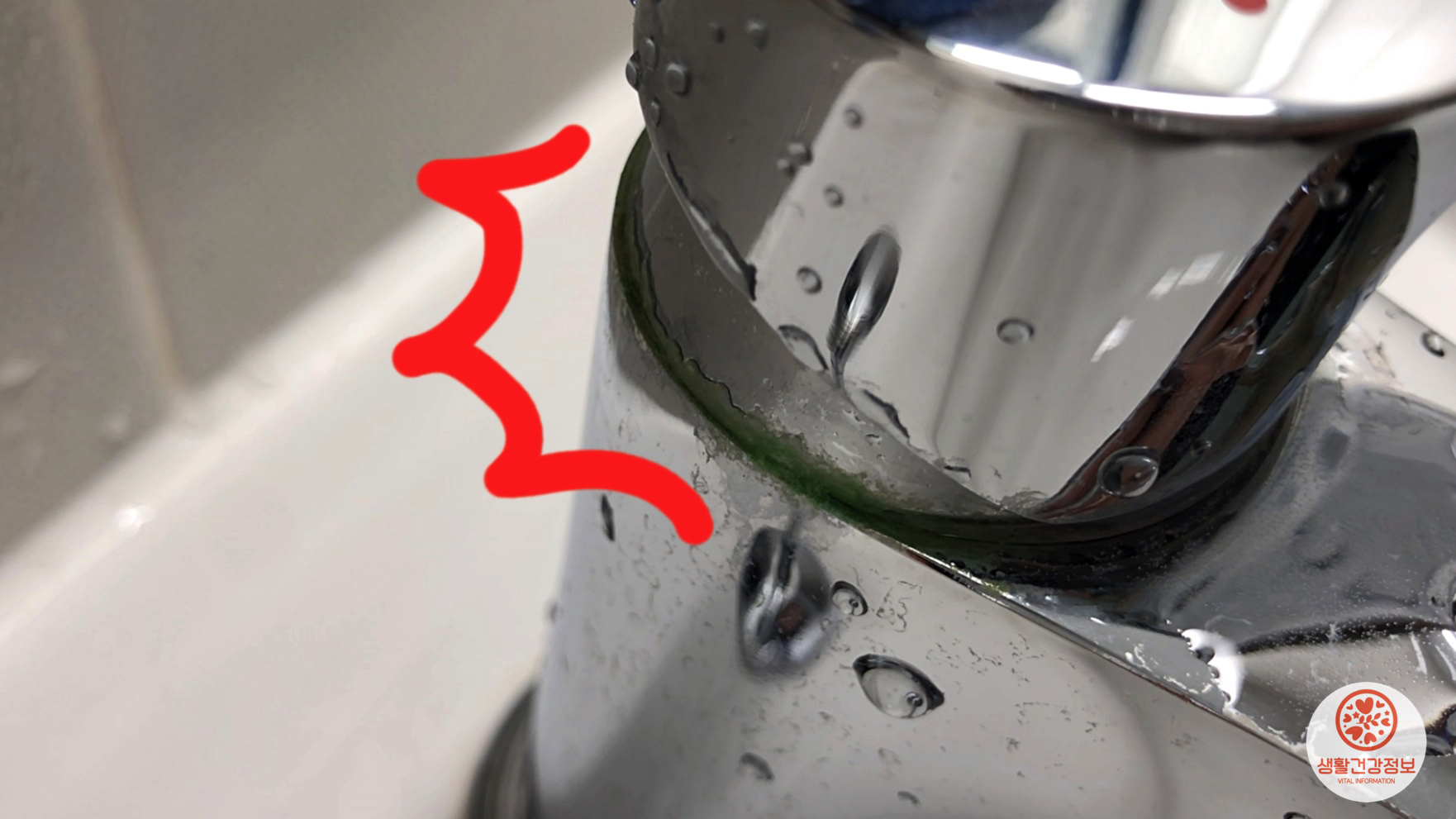 수도꼭지의 초록색 물 때 제거도 어렵지 않아요.