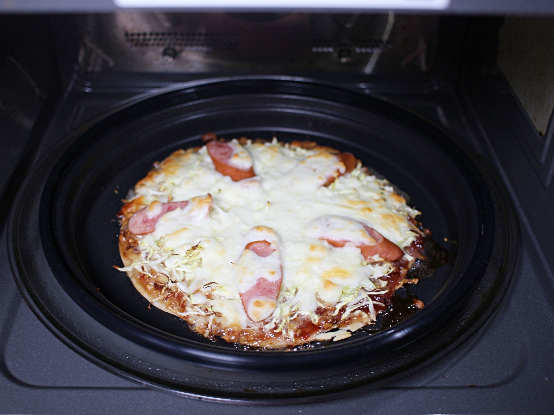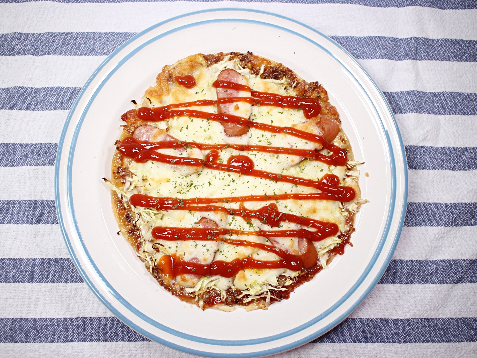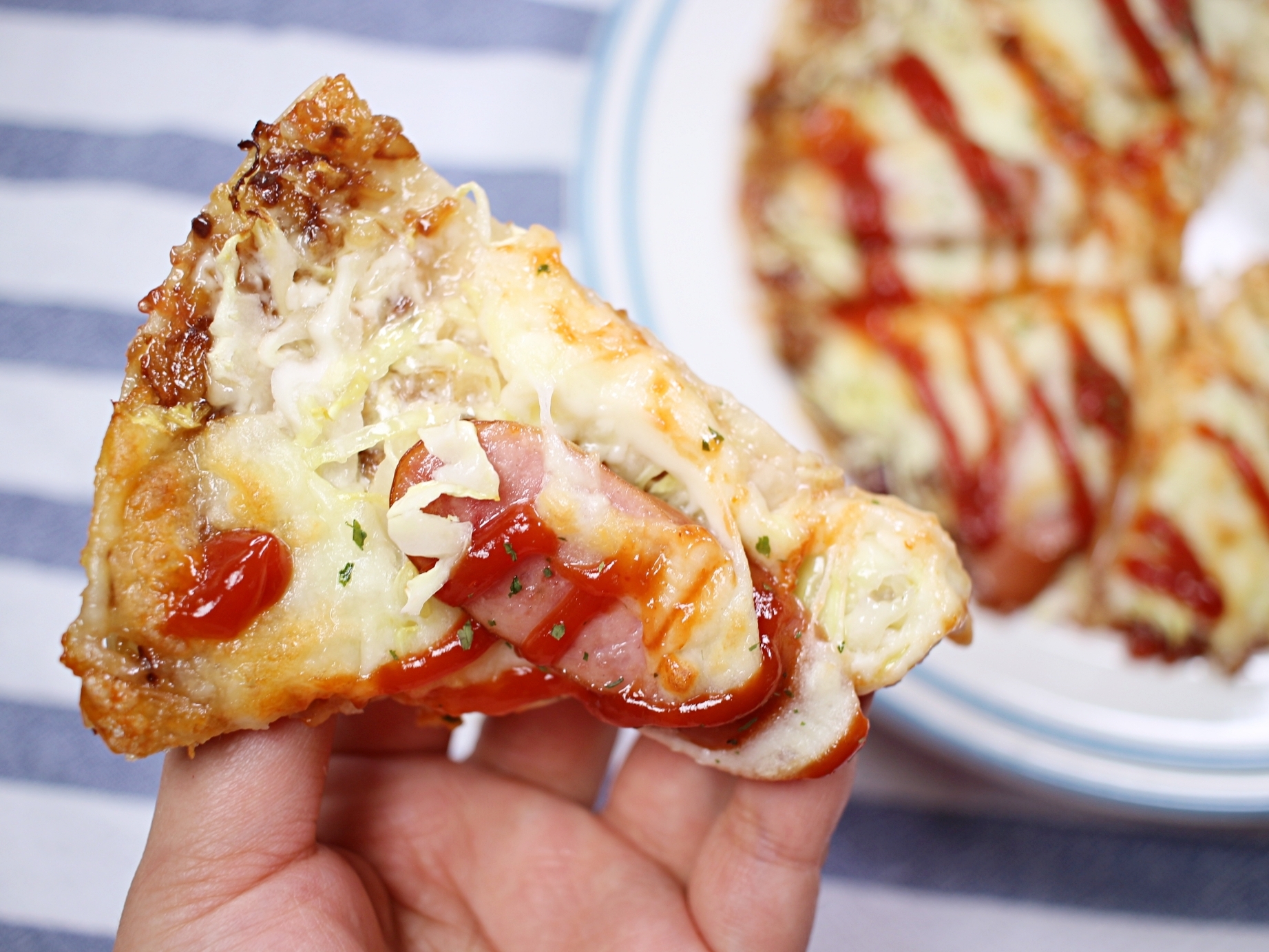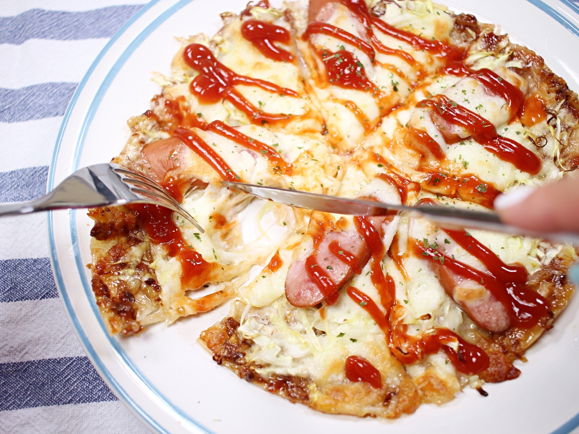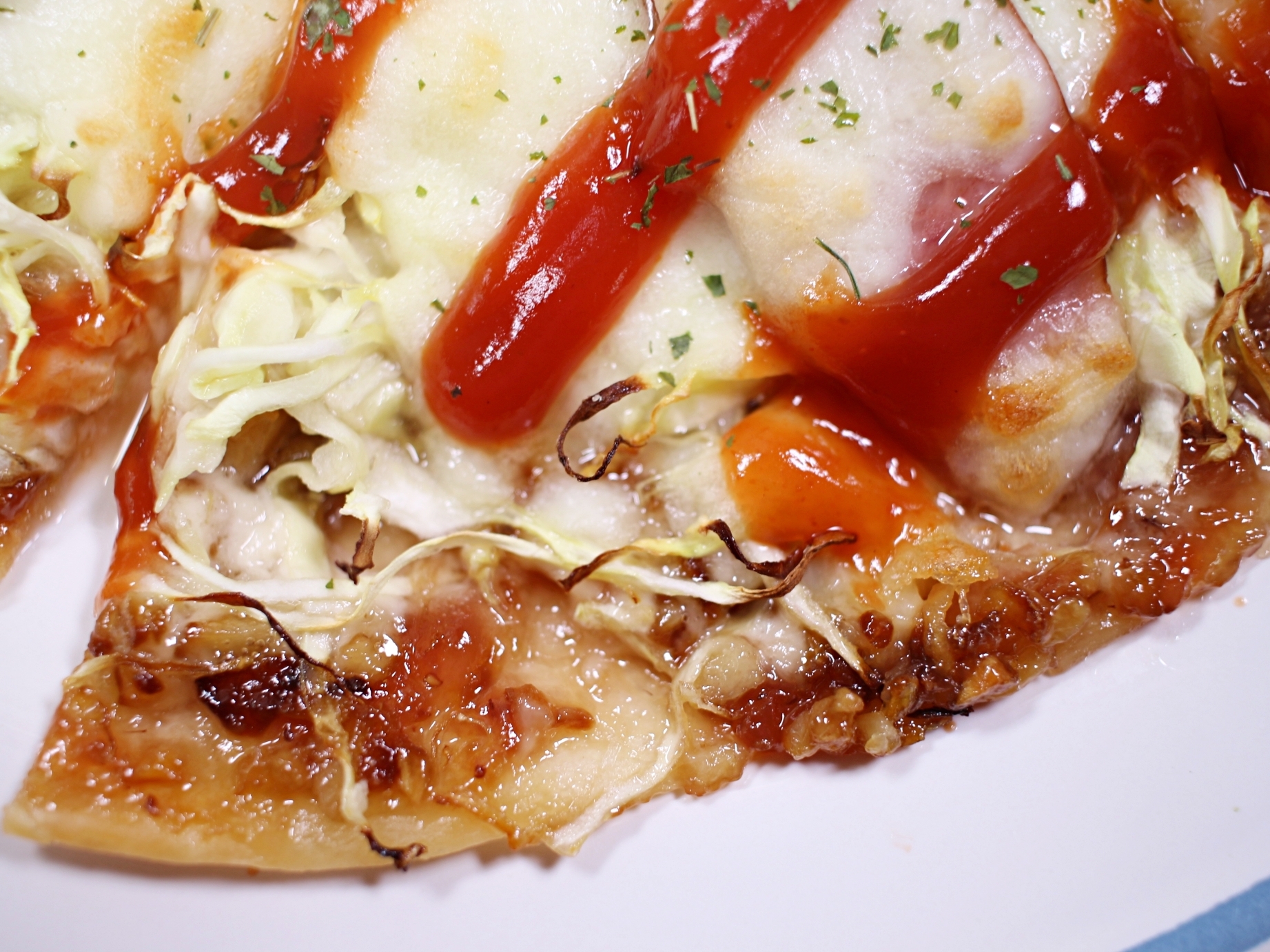 마지막에 케첩 뿌려서 마무리하면 맛있는 양배추피자 완성입니당~