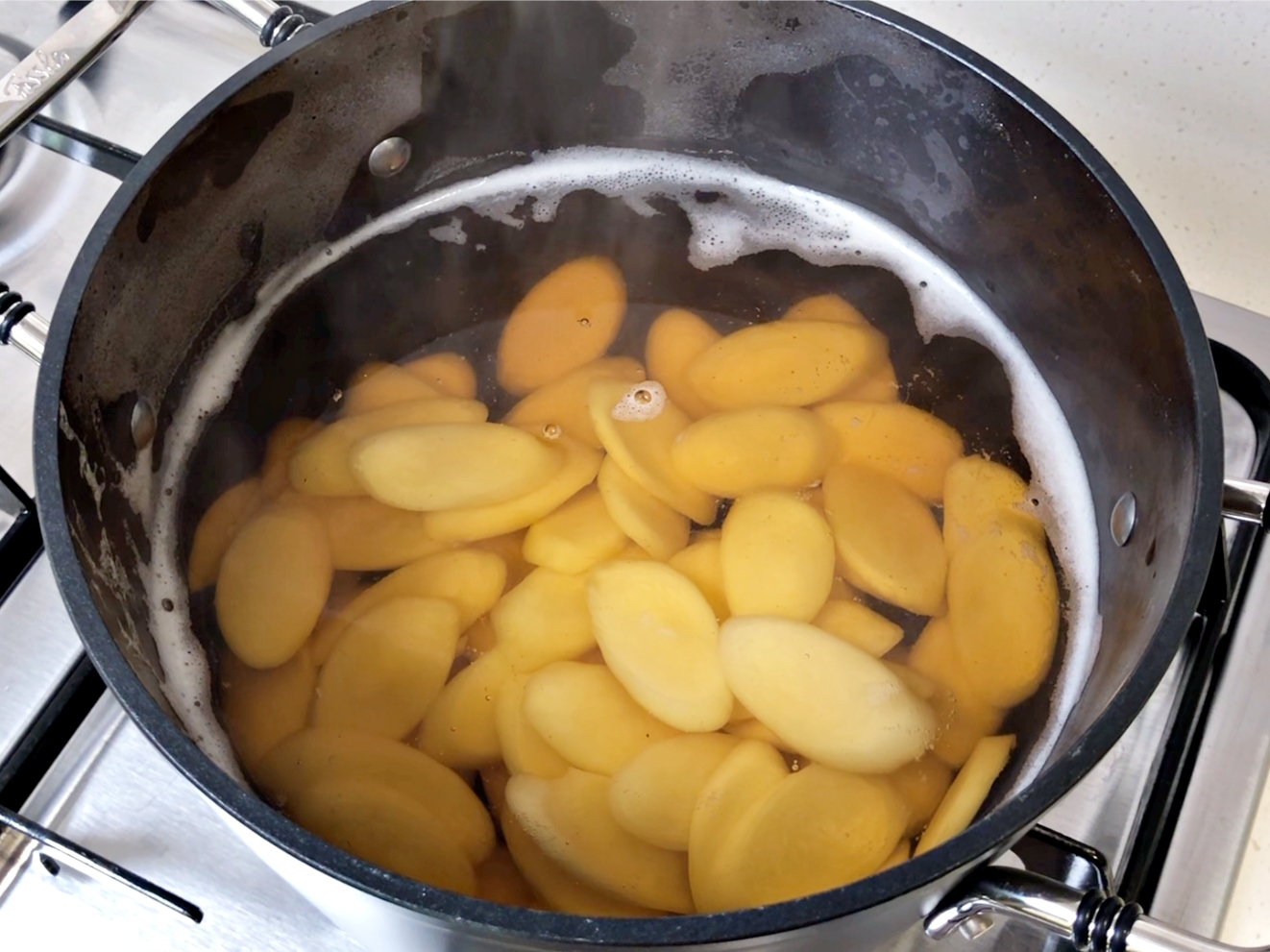 끓이기 시작한 뒤 거의 바로 거품이 확 끓어 오를거예요.