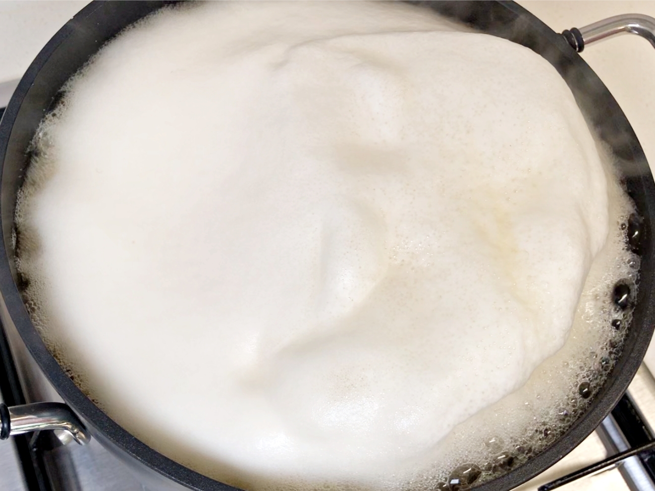 한가득 끓어오른 거품을 걷어내 주시고요.