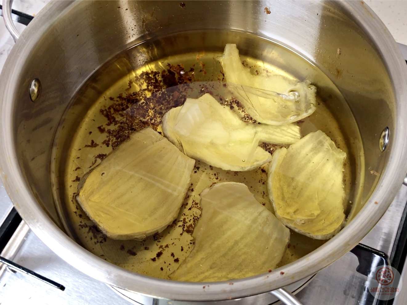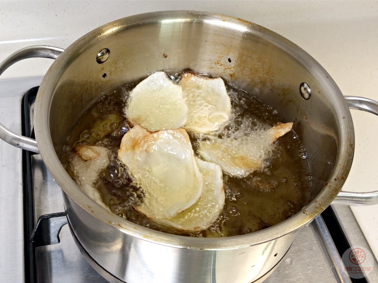 겉껍질도 버리지 말고 같이 튀겨야 효과가 더 좋답니다~!