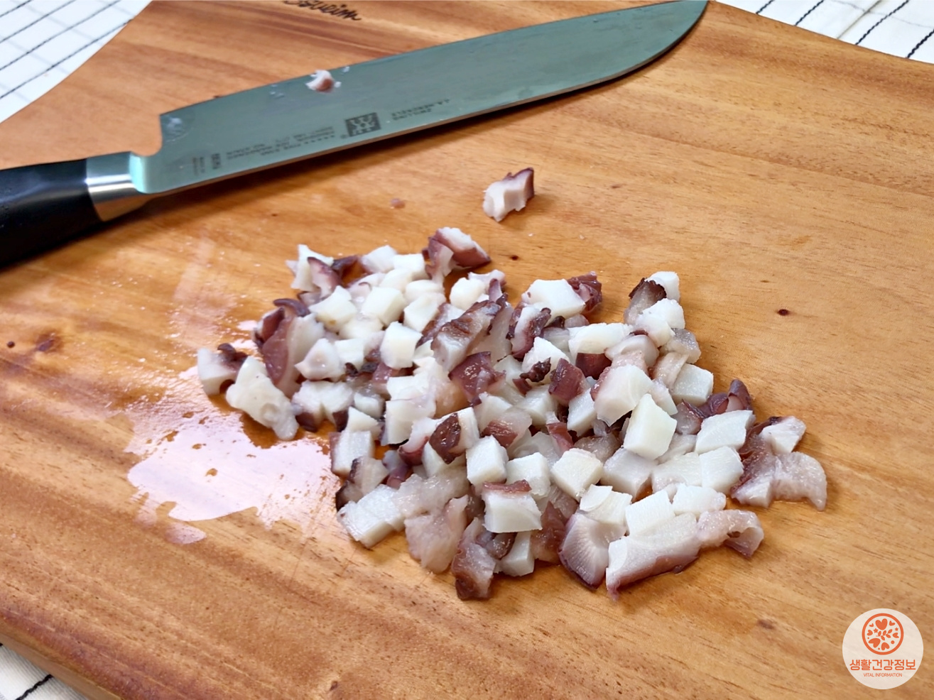 양배추랑 베이컨은 얇게 썰어주시고요.
