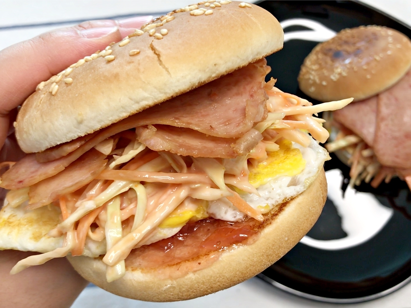 단짠단짠하고 아삭한 스팸버거.