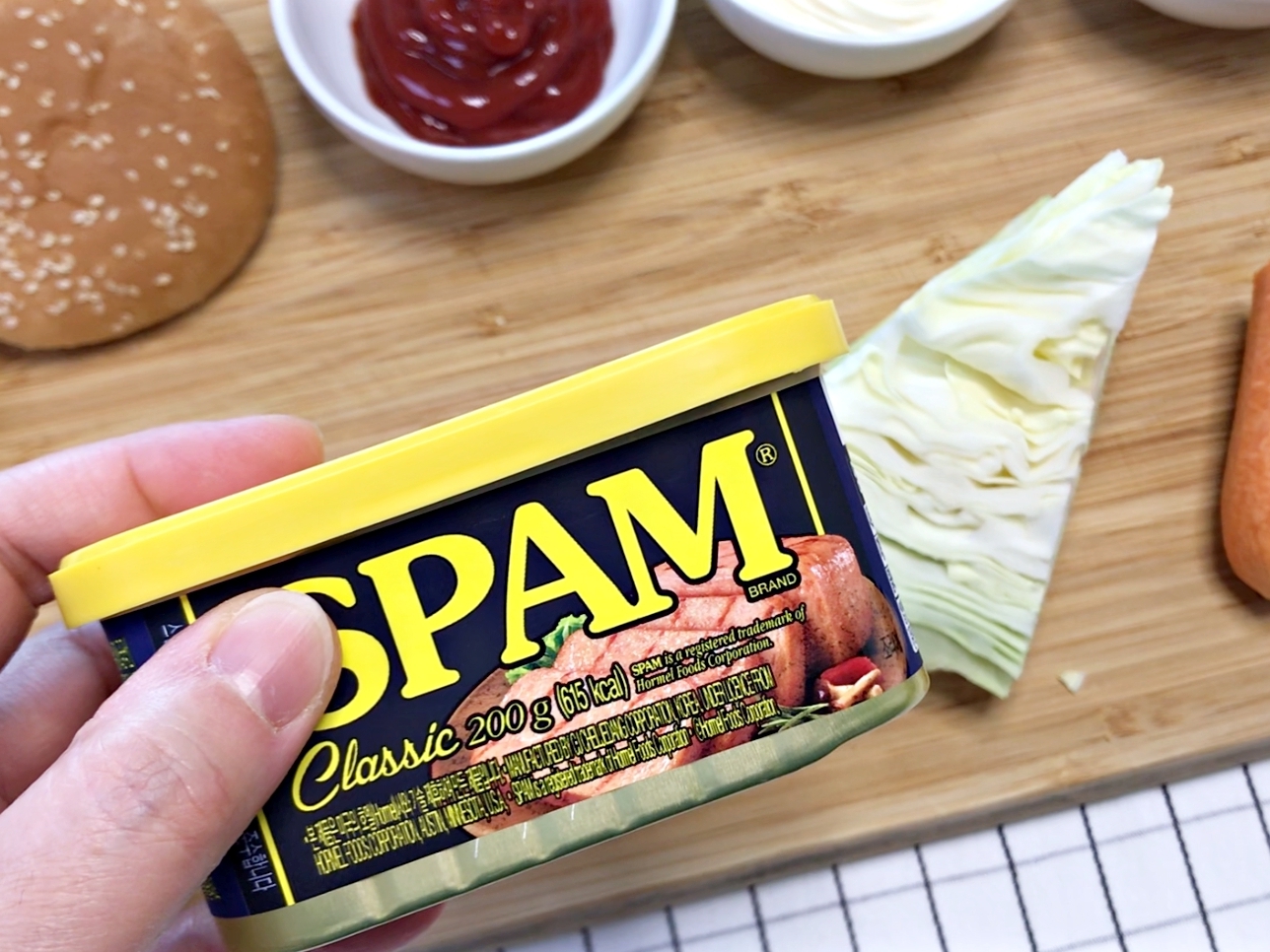 저는 스팸을 얇게 썰어서 바삭하게 구운걸 좋아해요.