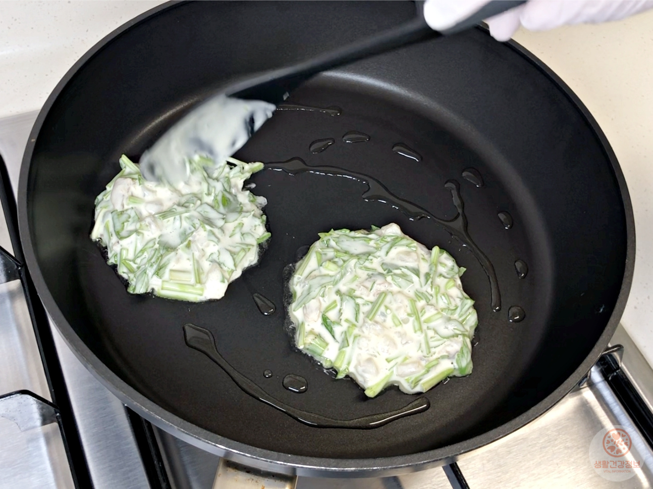후라이팬에 기름 두르고