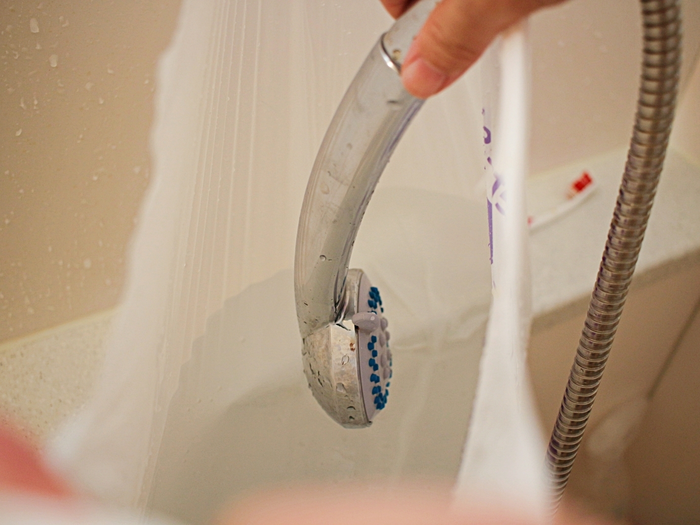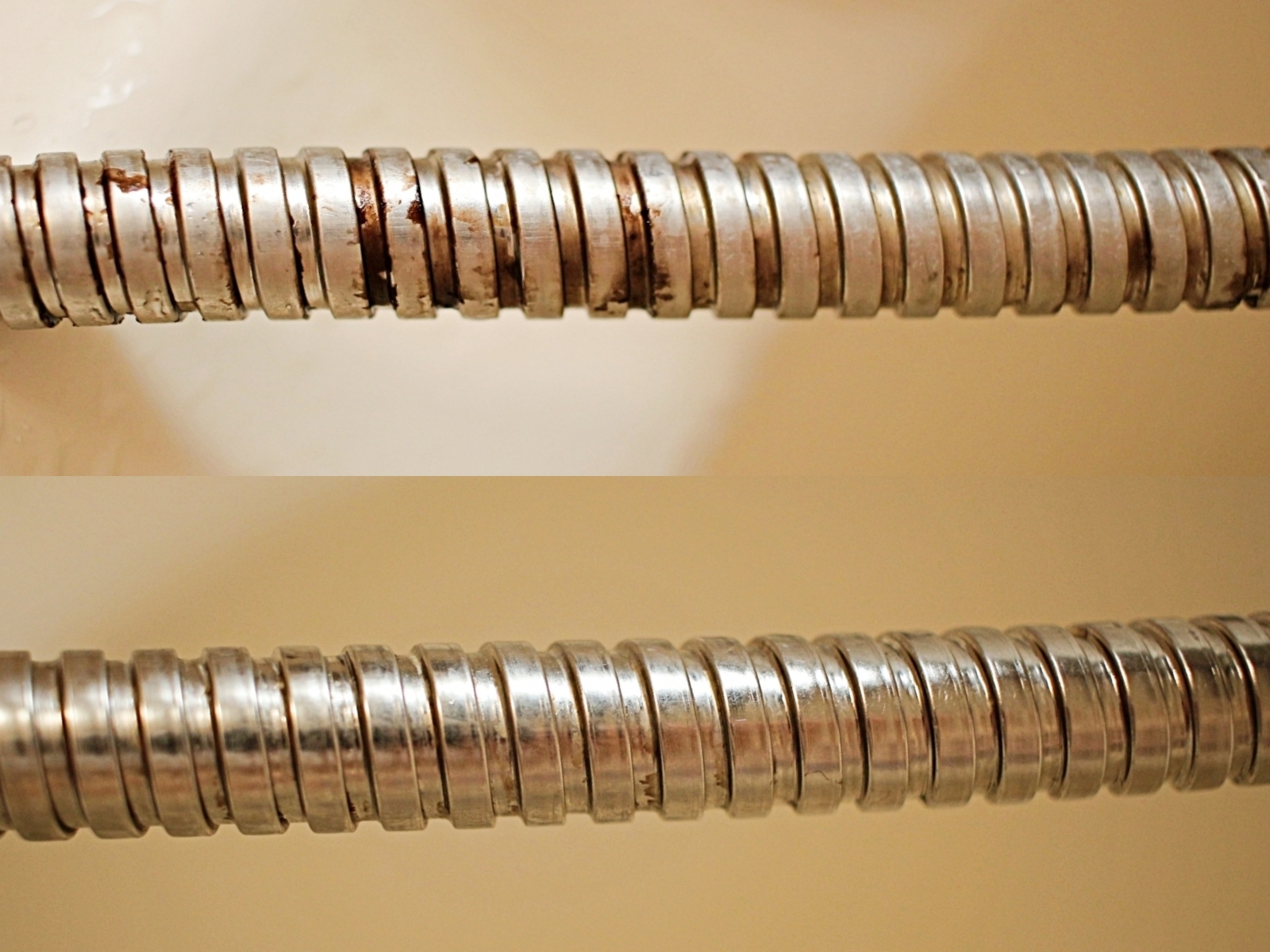 샤워기줄을 꼼꼼하게 닦아주세요.