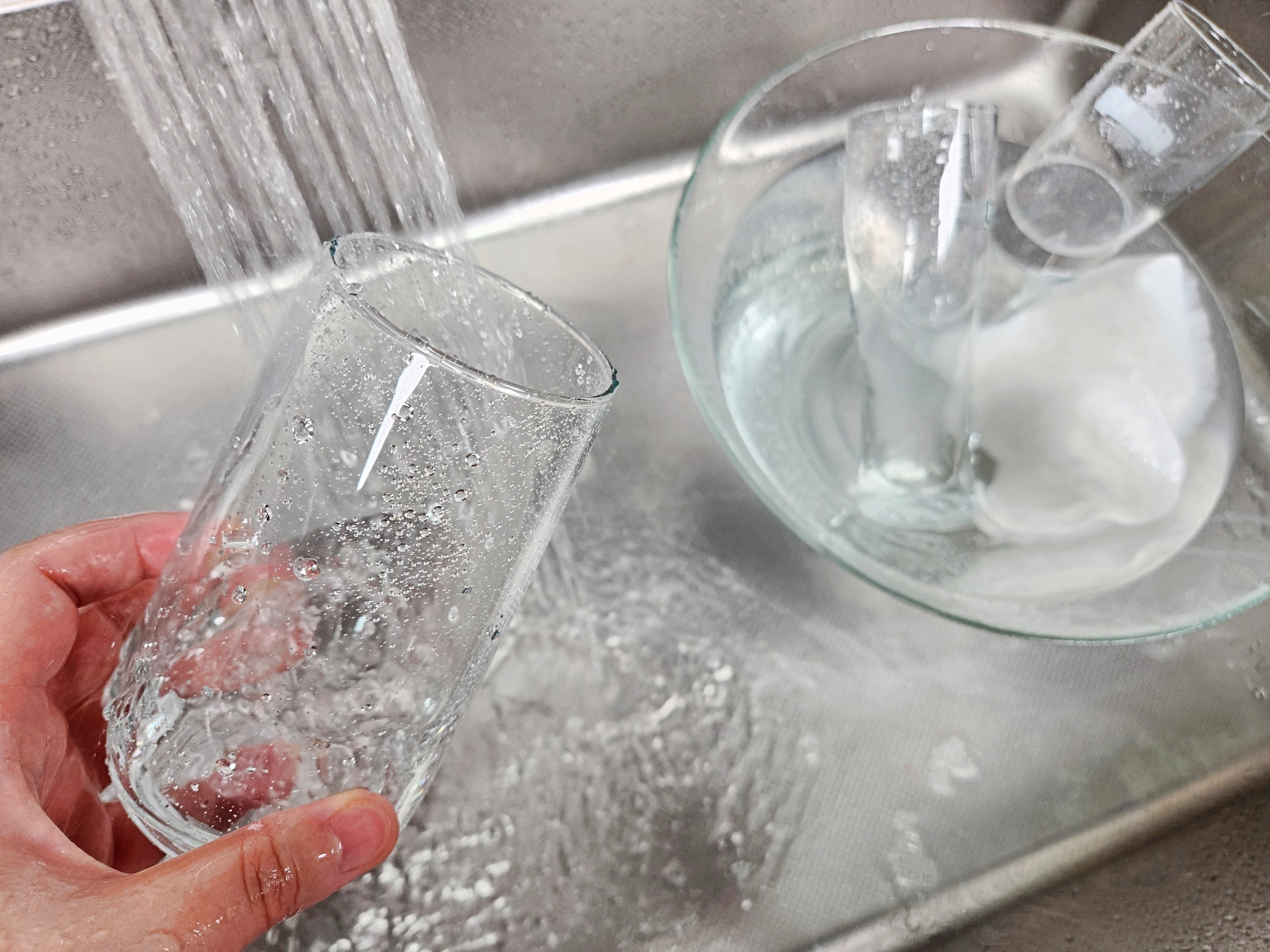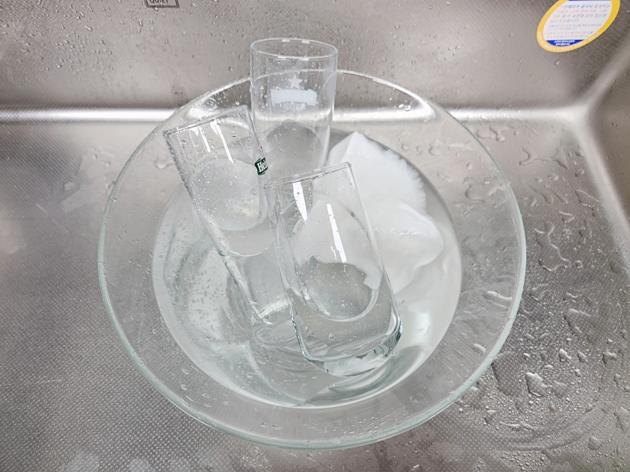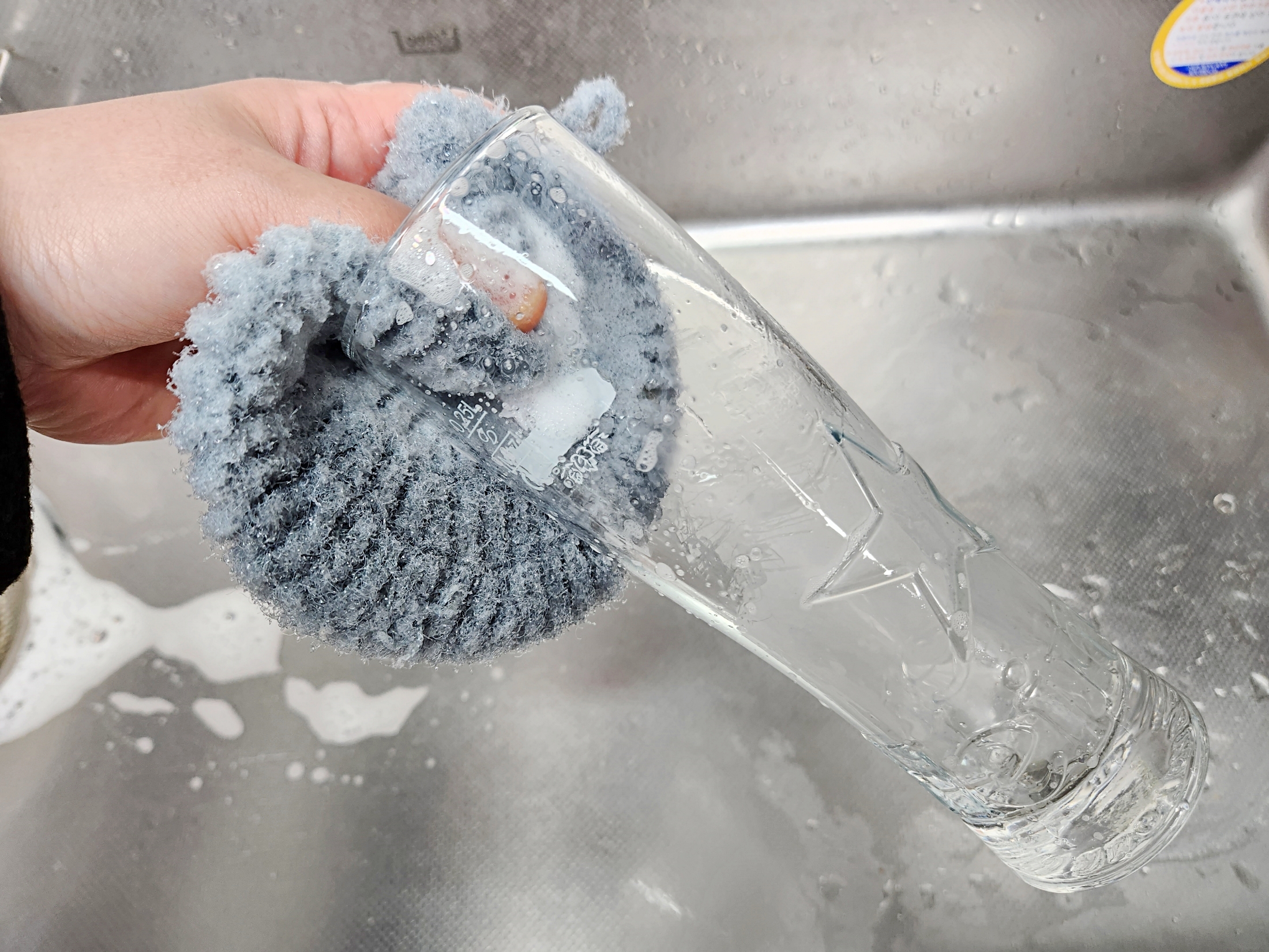 보통 유리컵을 주방세제로 설거지하면