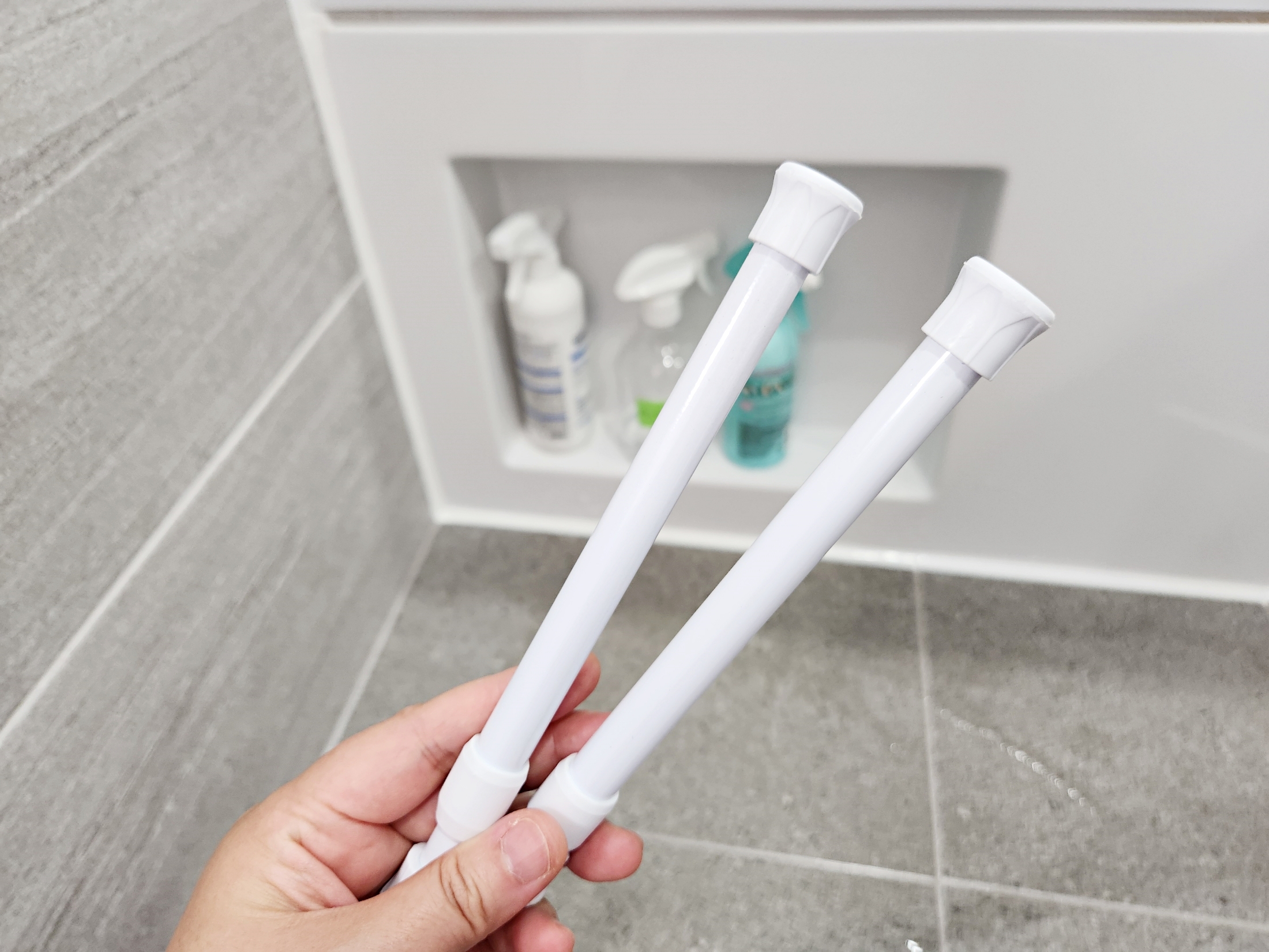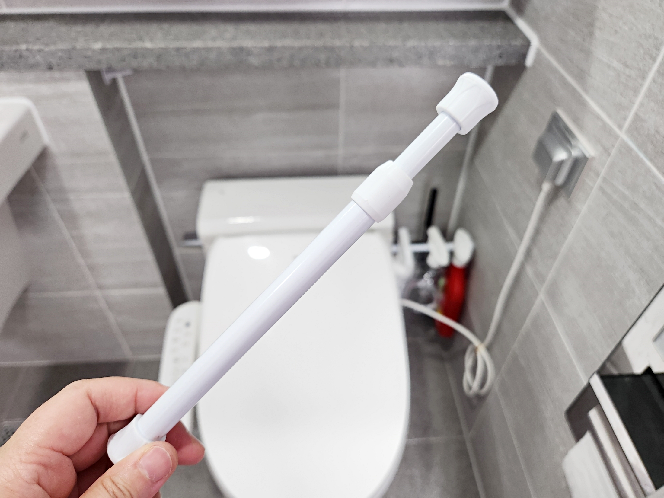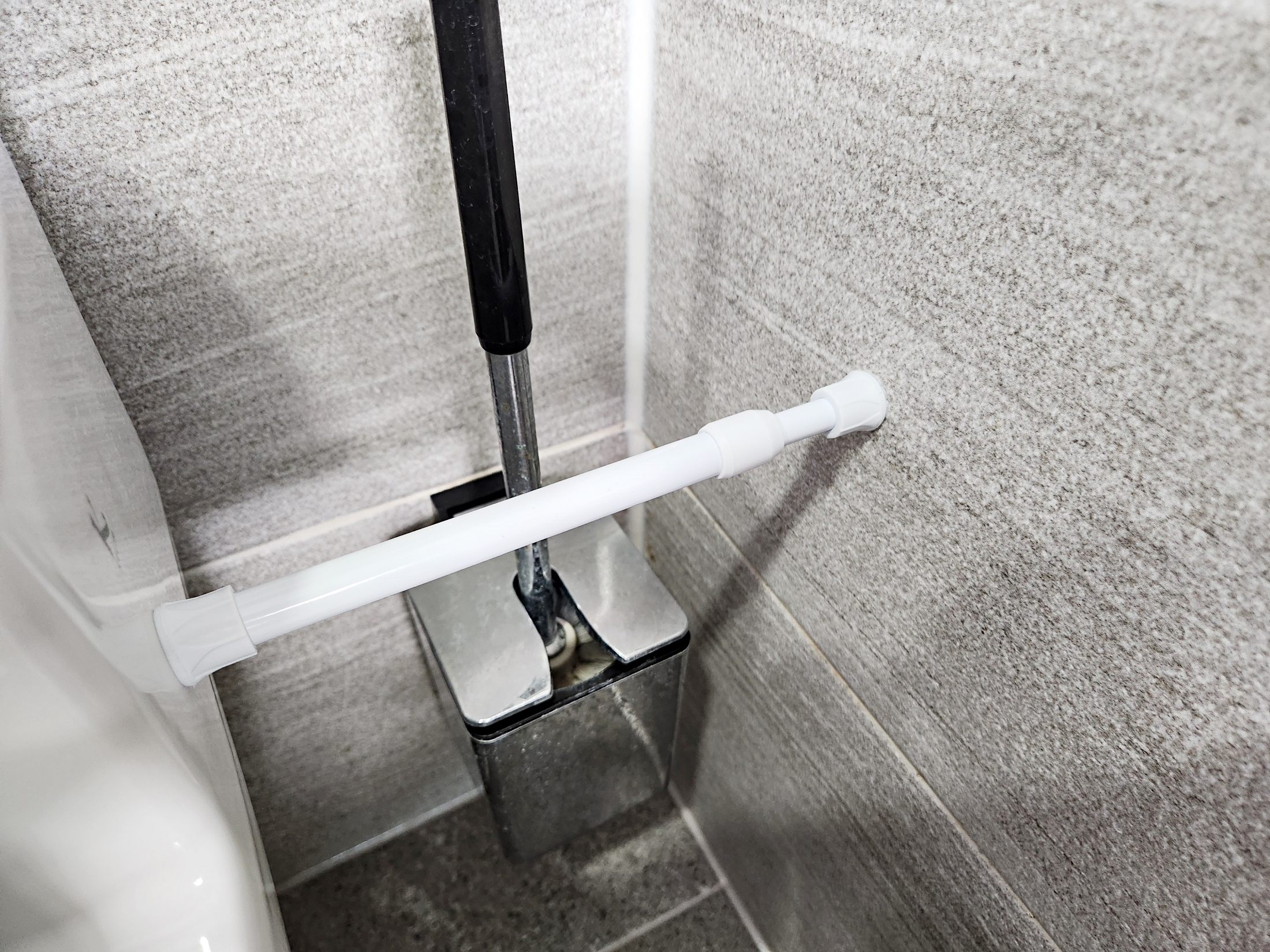압축봉에 청소도구들을 하나씩 걸어봤는데