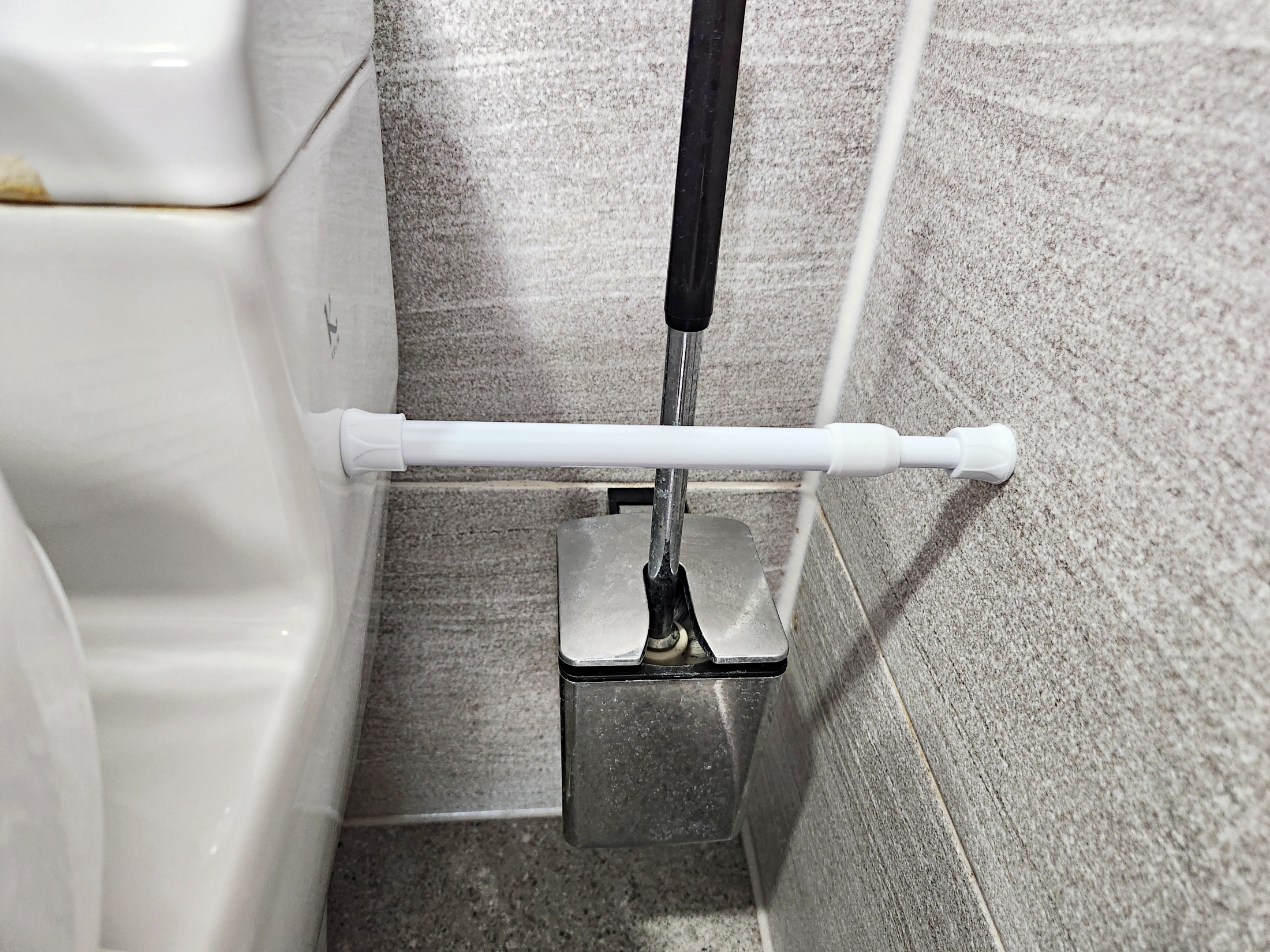 이걸 벽이랑 변기 물탱크 사이에 딱 끼워서 고정!