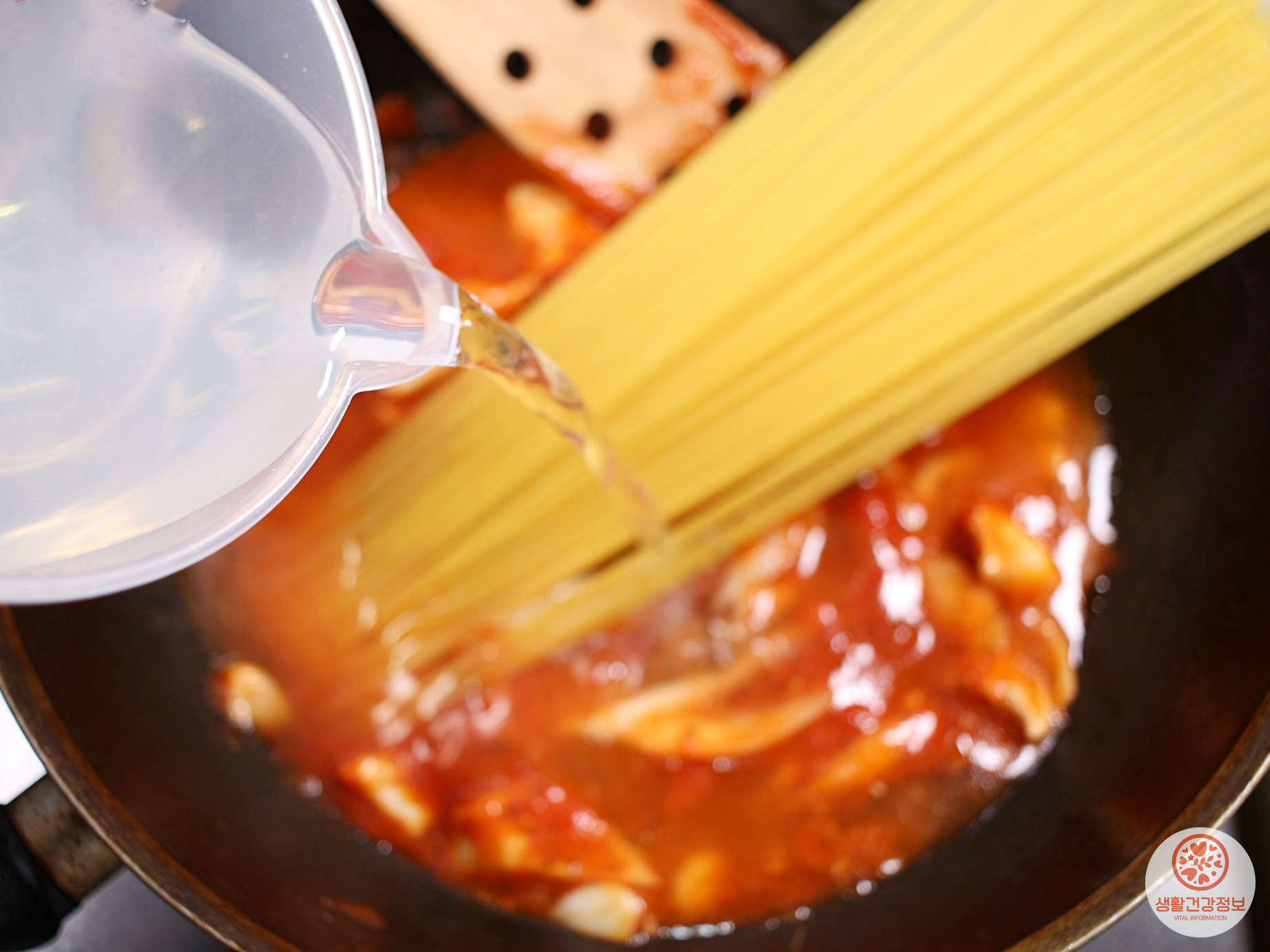 저는 웍을 사용해서 파스타면이 밖으로 삐져 나왔는데요.