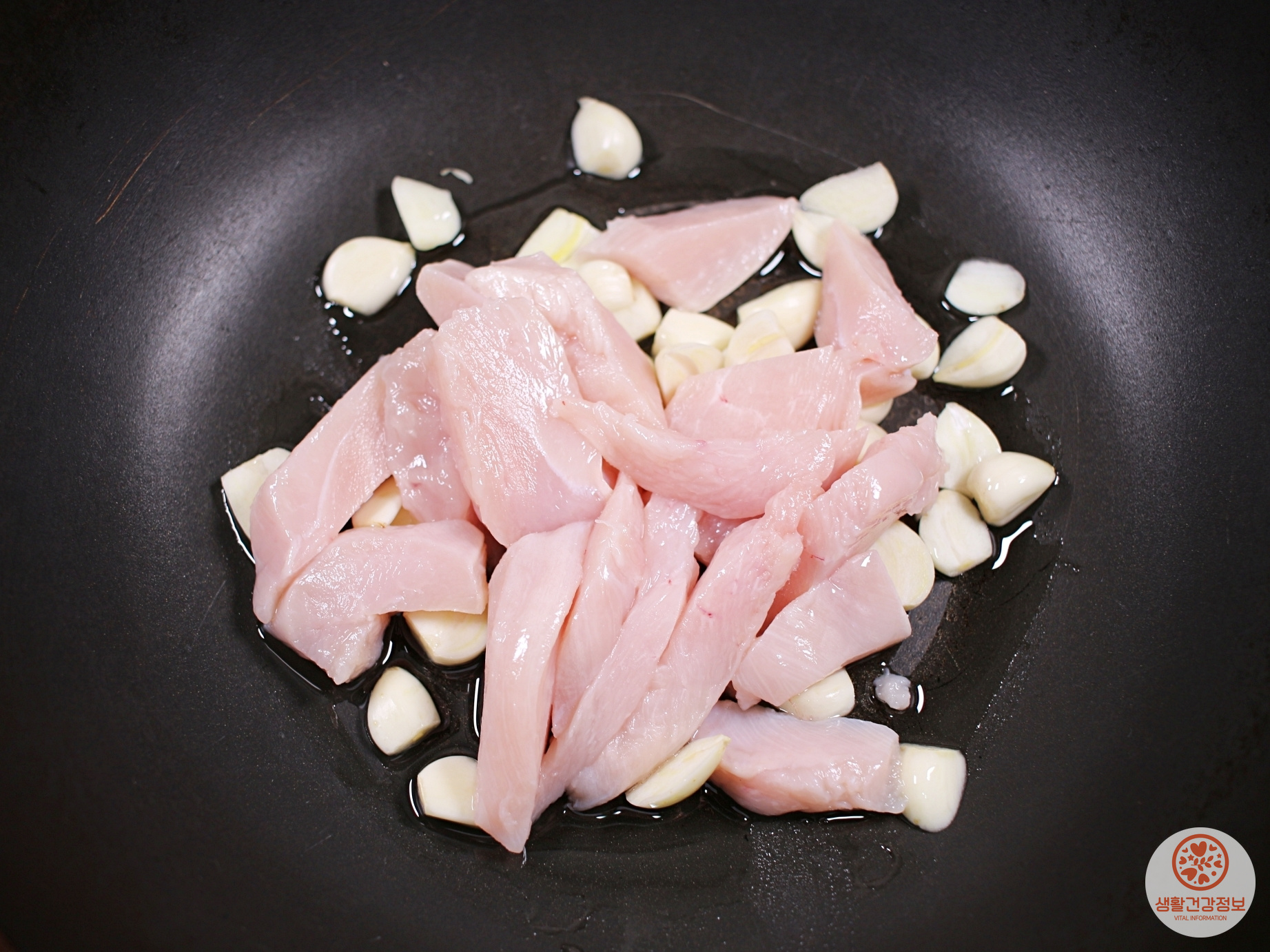 마늘향이 충분히 올라오면 닭가슴살 넣고