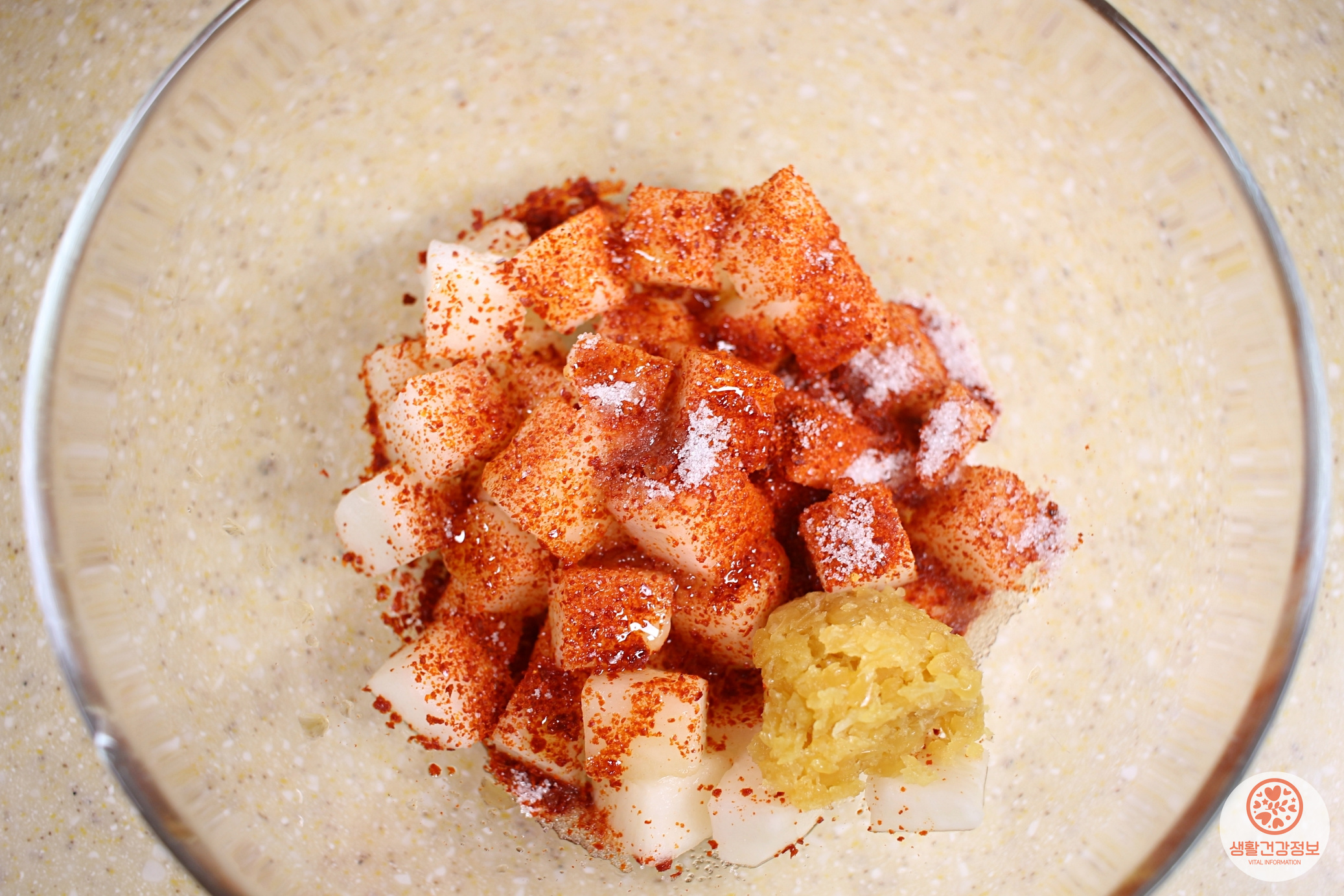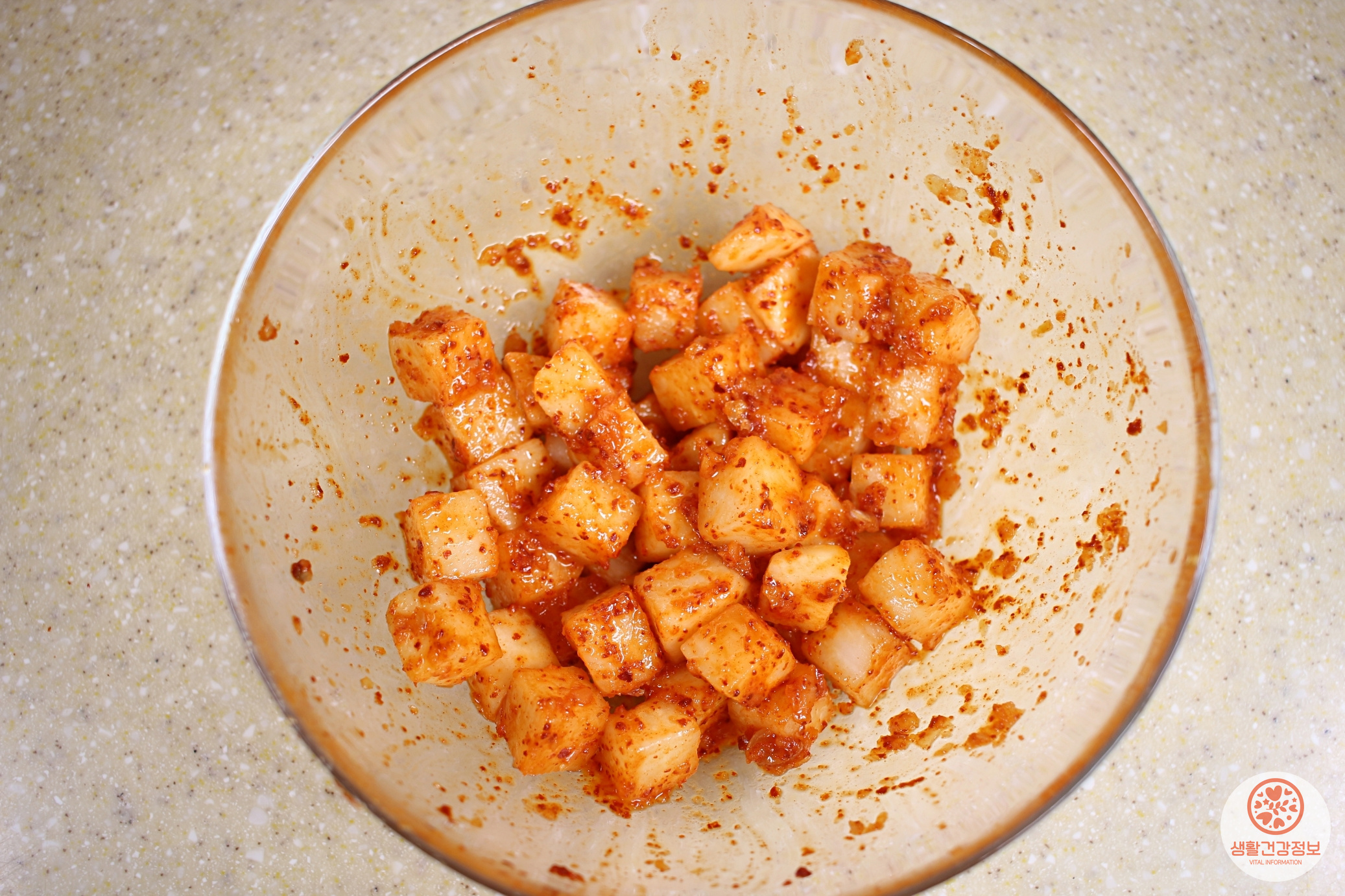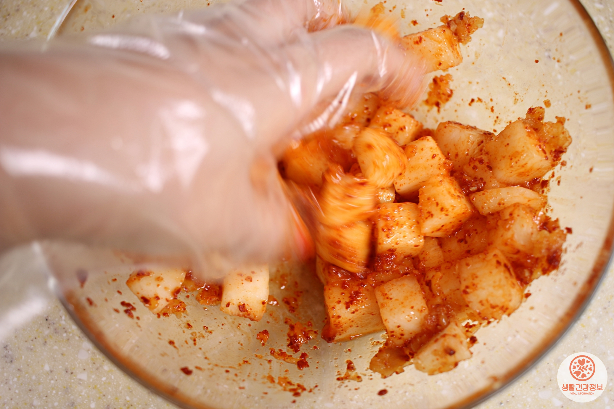 치킨무, 고춧가루, 멸치액젓, 설탕,