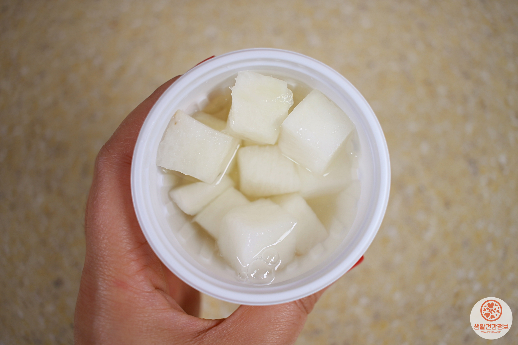 치킨무는 흐르는 물로 헹궈서 물기를 빼주세요.