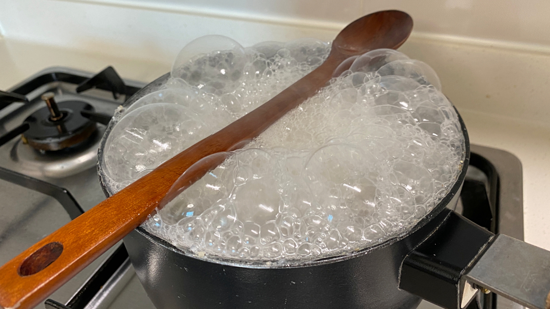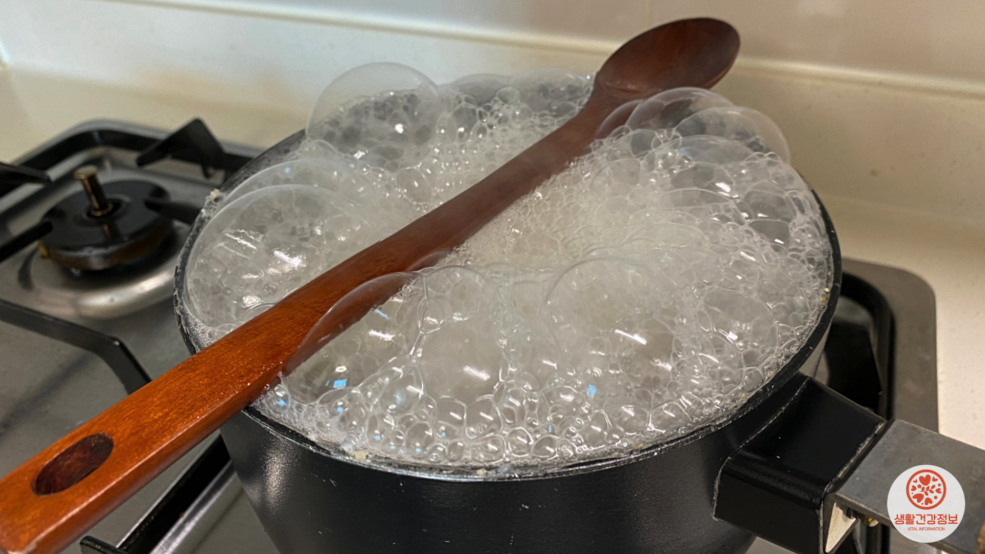 거품이 나무주걱에 닿아 열이 식기 때문에