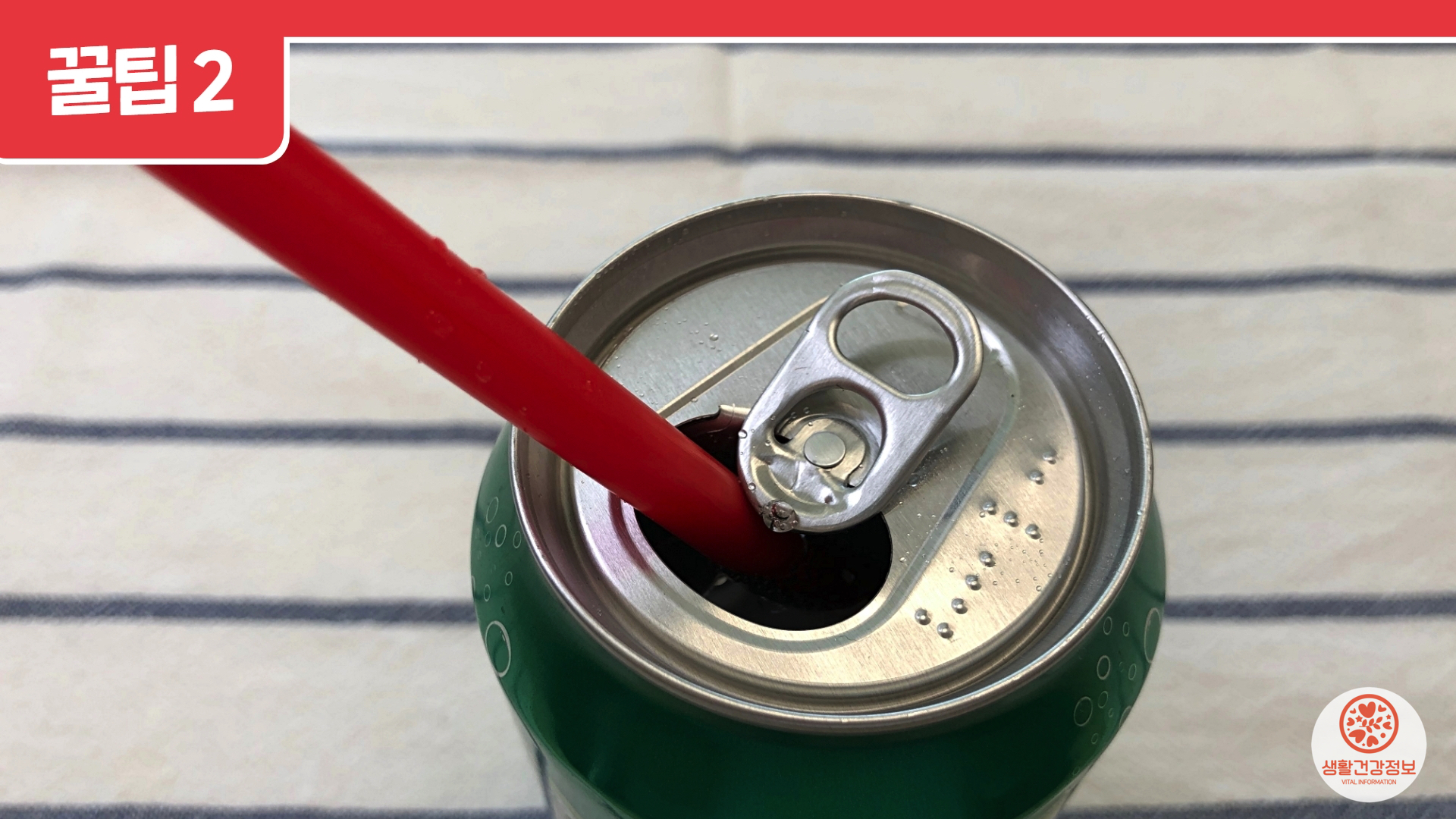 2. 캔음료에 끼운 빨대가 자꾸 탈출한다면?!