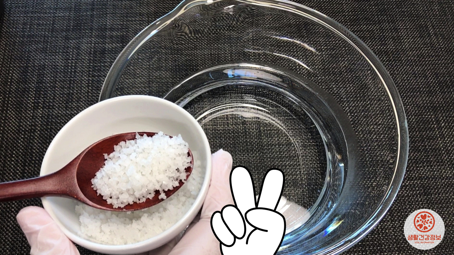 그리고 이 물에 천일염을 2큰술 넣고